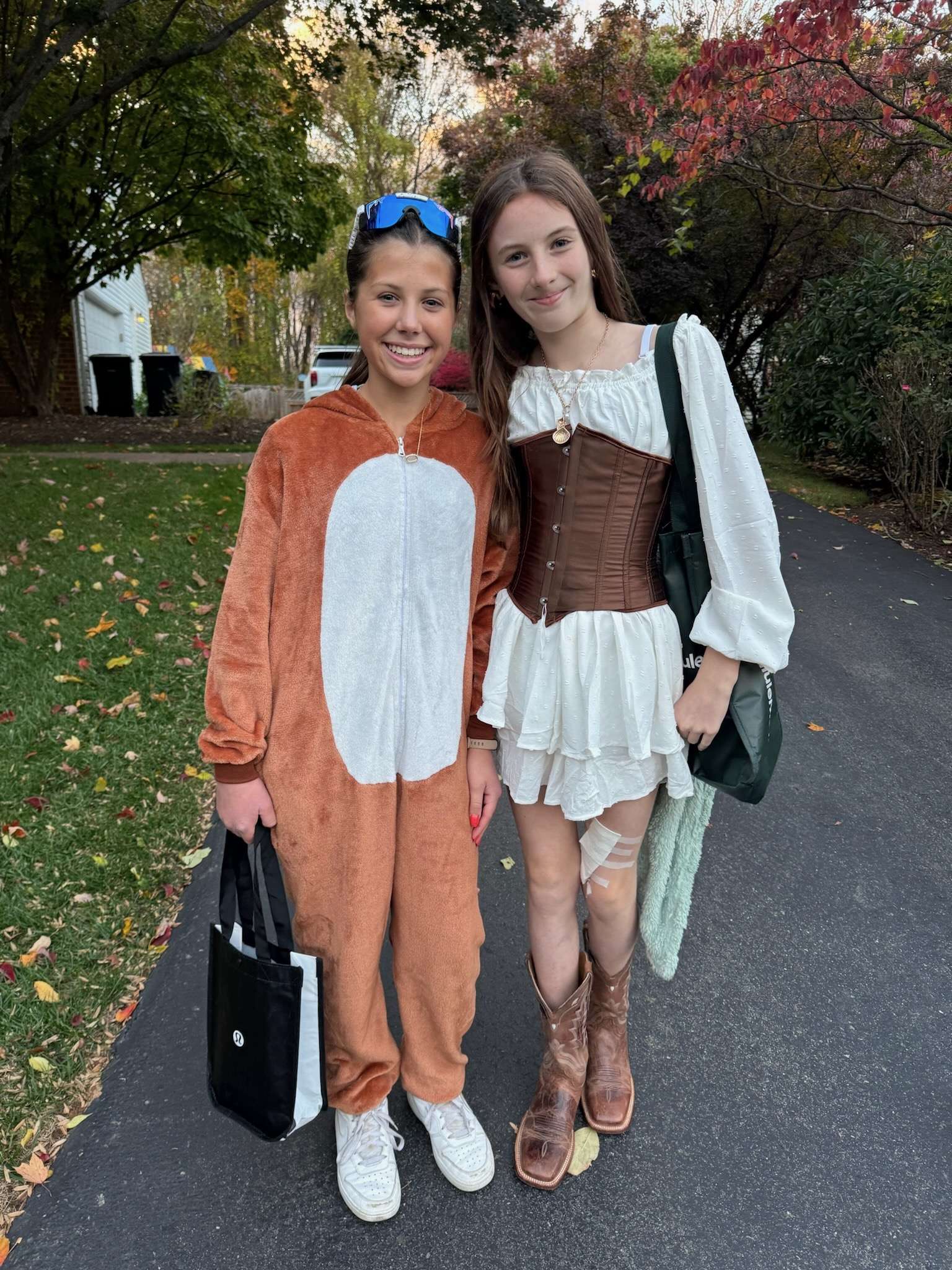 Emerson and Harper recycled last year’s costumes and wore onesies.