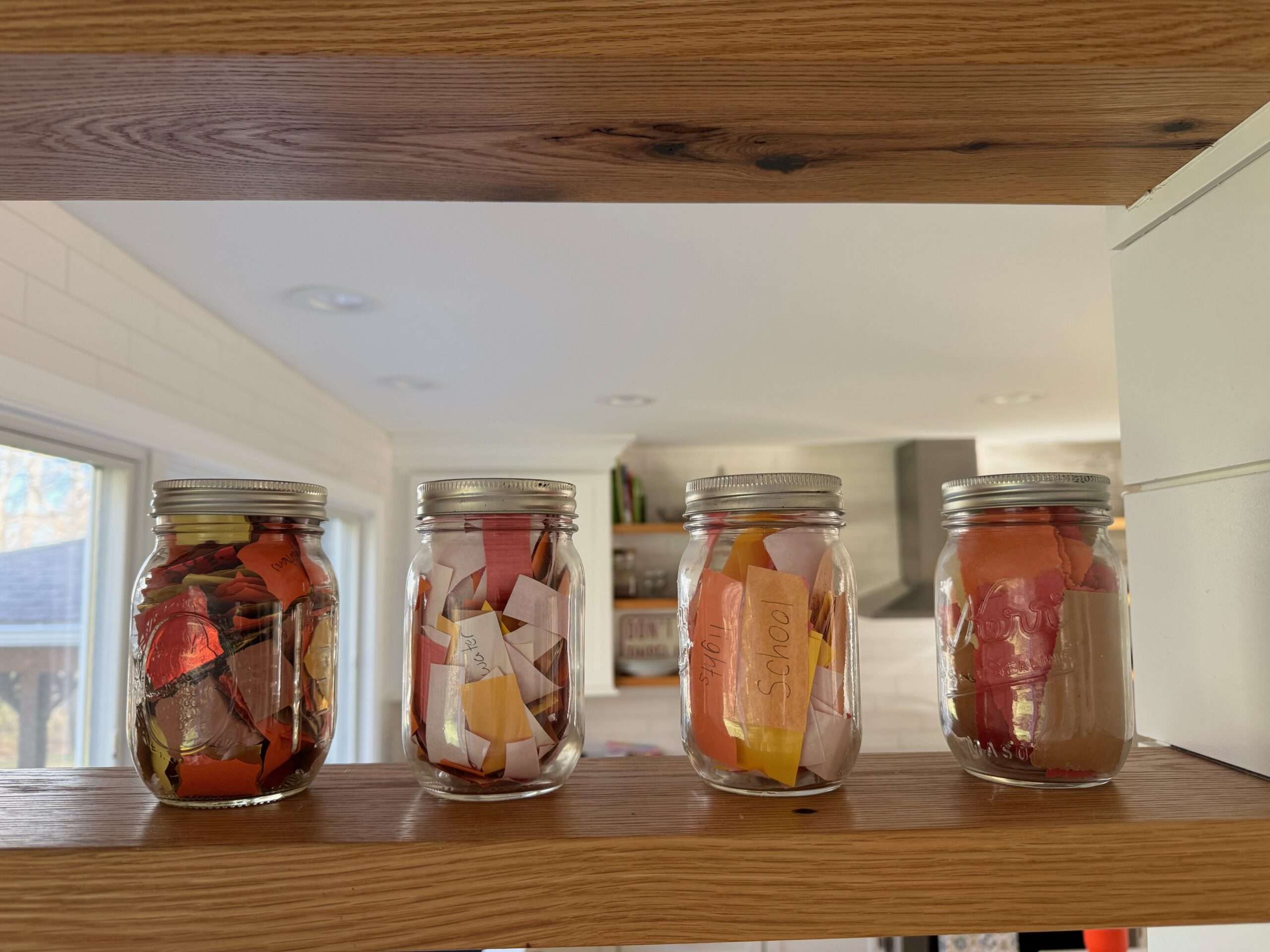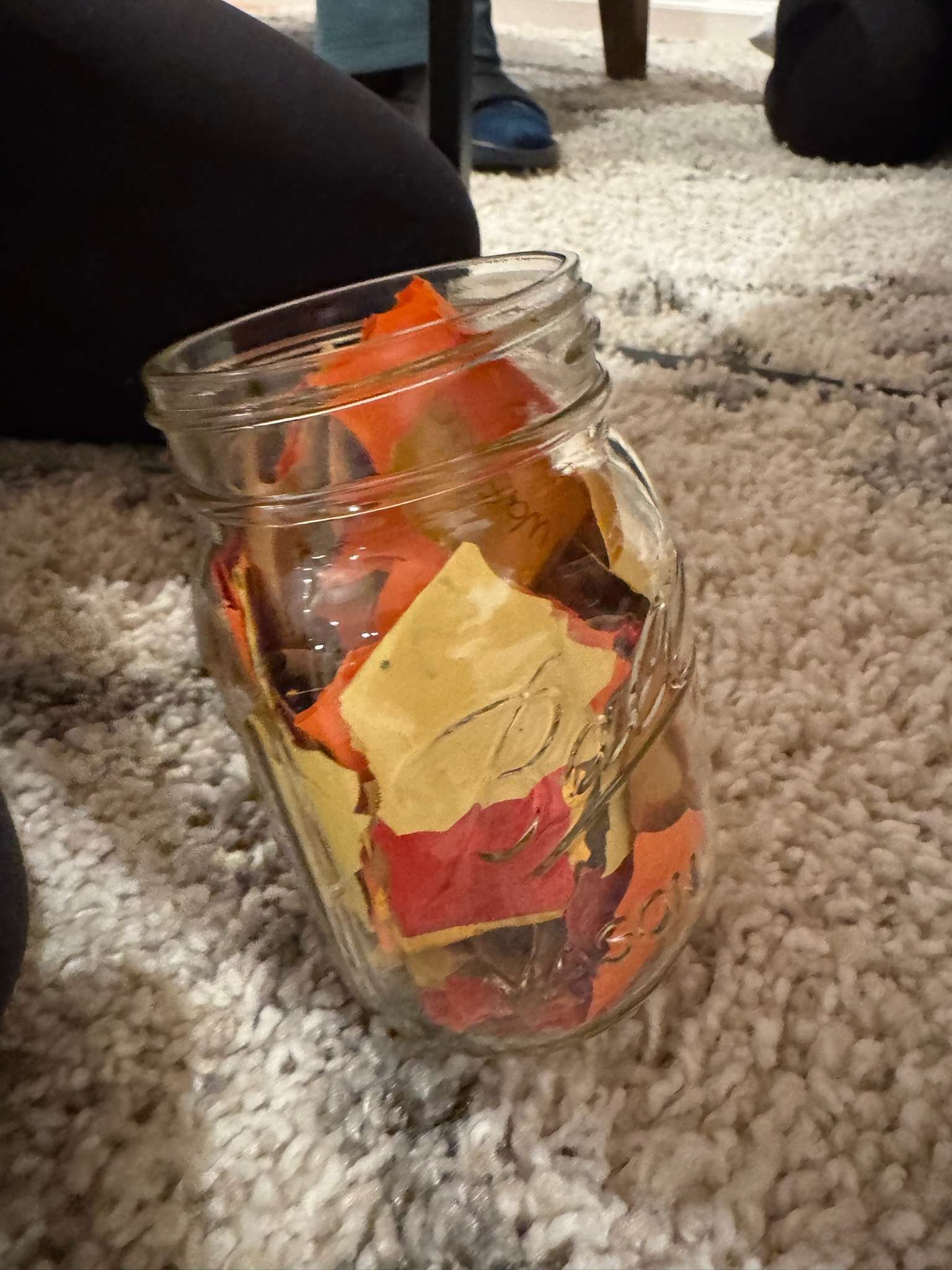 Harper created the Thanksgiving Grateful Jar four Thanksgivings ago and it’s become an annual tradition. Once the jar is filled up, each person takes turns reading a handful of the jar’s contents. I find myself oohing and aweing or saying that’s I good one, or I should have written that with each saying. From friends, family, money, to farting, chipotle, water, sleep away camp, dutch braids, sweatpants, and much more. We are thankful for the “obvious” ones but thankful for the small mundane things as well…which truly are the big and beautiful things. I love this tradition….such a great reminder of life’s beautiful blessings.