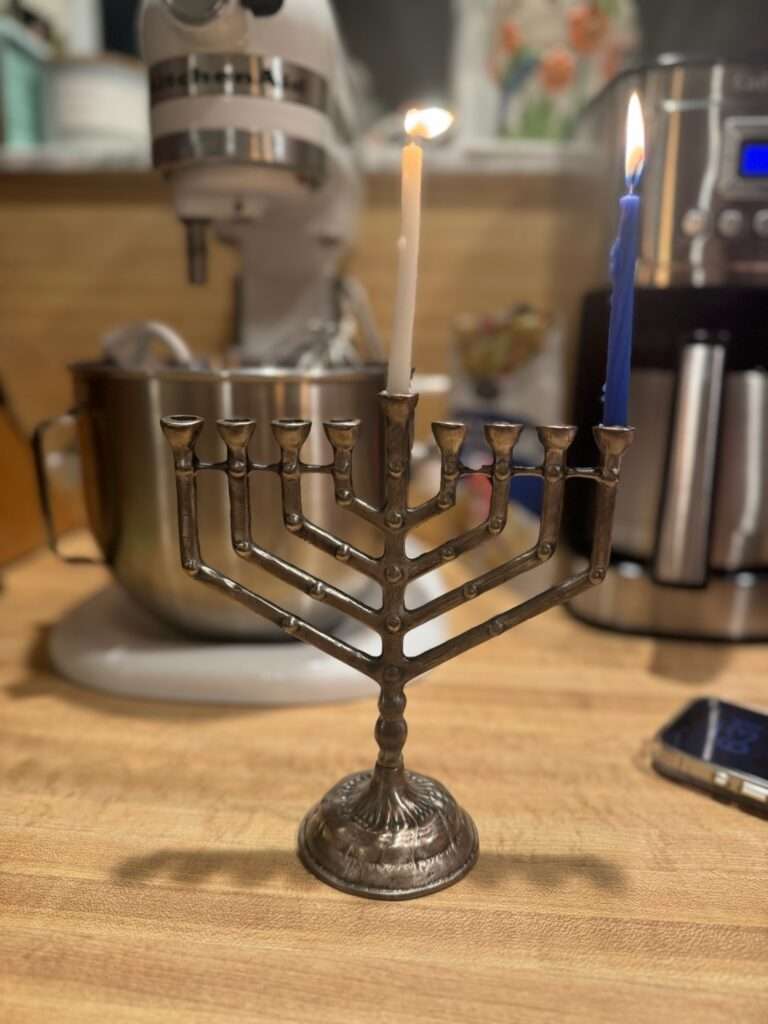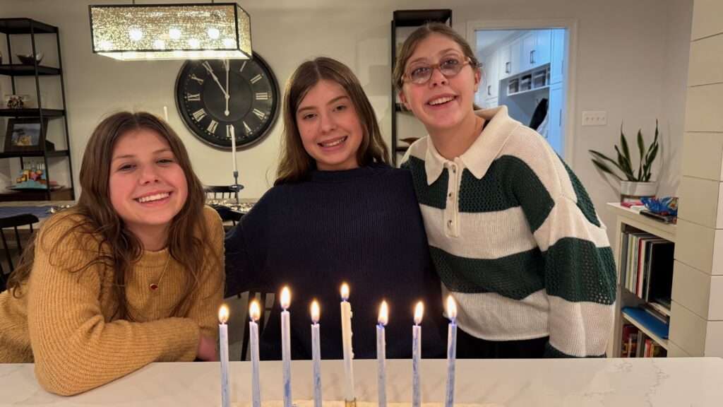 Hannukah started the Sunday we unexpectedly stayed in New York an extra night. Nights two through seven we celebrated at home by lighting the menorah. Despite the girls’ activities, we always found a time to light the candles, even if very late in the evening. The last night of Hannukah we celebrated at my parents’ house with latkes, sou-vide chicken, green beans, and chocolate mousse cake.