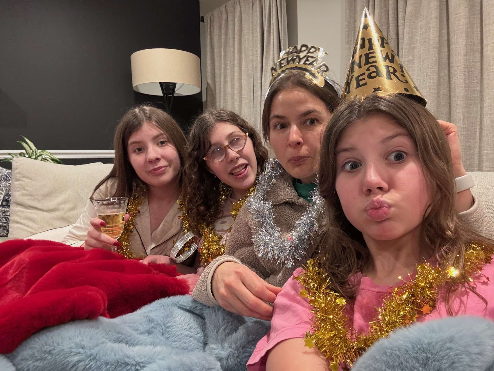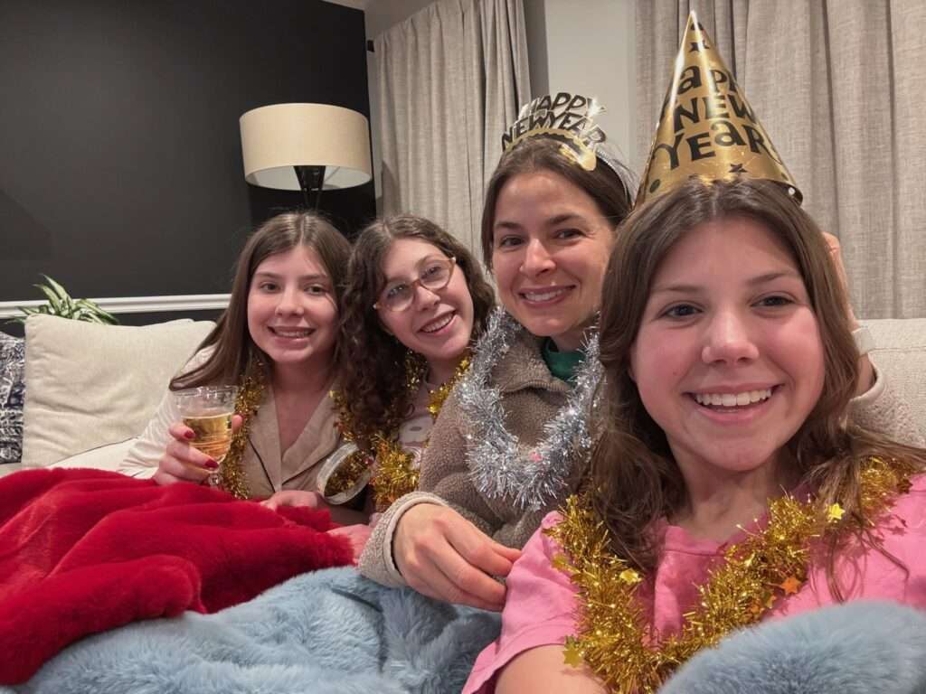 New Year’s Eve we stayed home. We all cooked a yummy pasta and turkey dinner. Justin went to bed at 10:00, probably the first time he hasn’t stayed up until midnight on New Year’s Eve in at least 30 years. The girls and I completed our packing for Pittsburgh, where we were headed the next morning, turned on Ryan Seacrest’s New Year’s Eve Show and toasted with cider. It was fabulous to stay home!