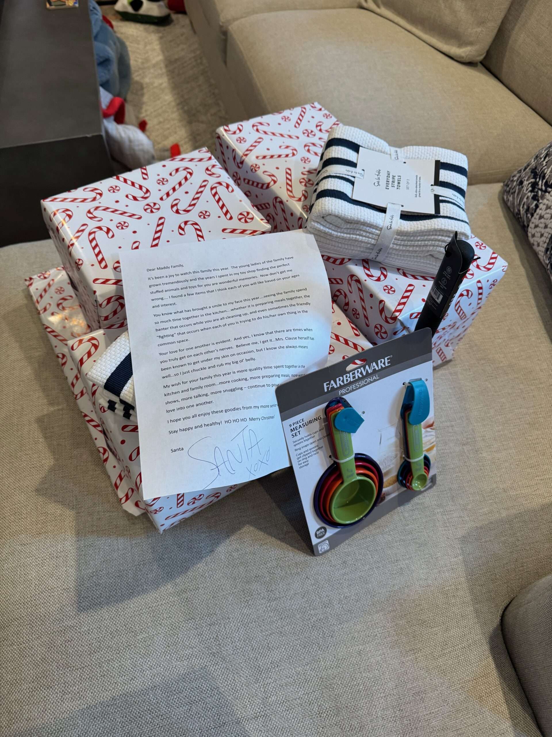 We saw what Santa brough first…a lot of shared home gifts this year. He wrote the girls a letter about how wonderful it had been to witness the girls come together and be present.