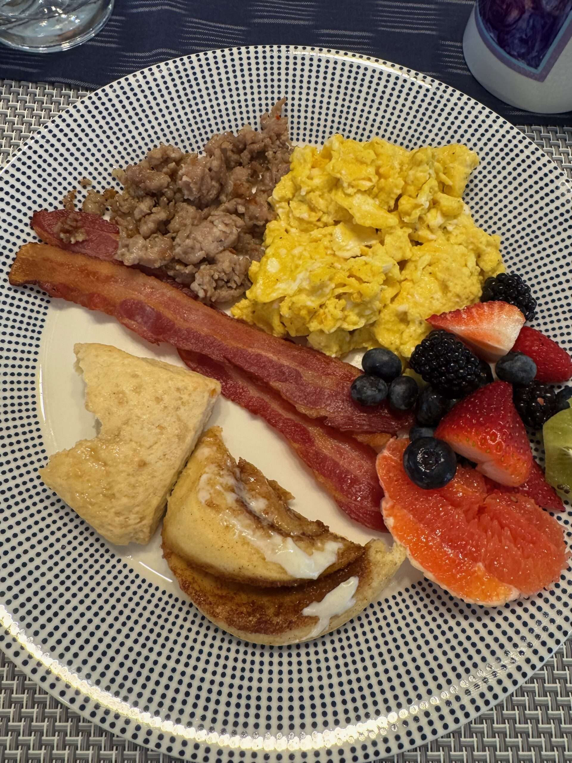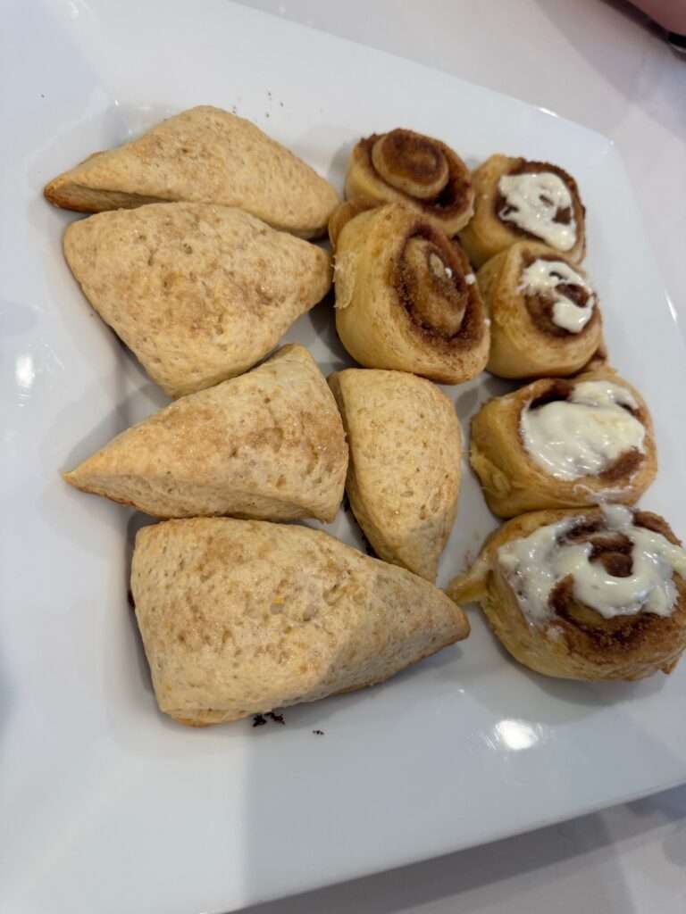 Followed by a delicious breakfast. Avery made her delicious cinnamon rolls and Harper made citrus scones. We also had bacon, sausage, fruit, and eggs!