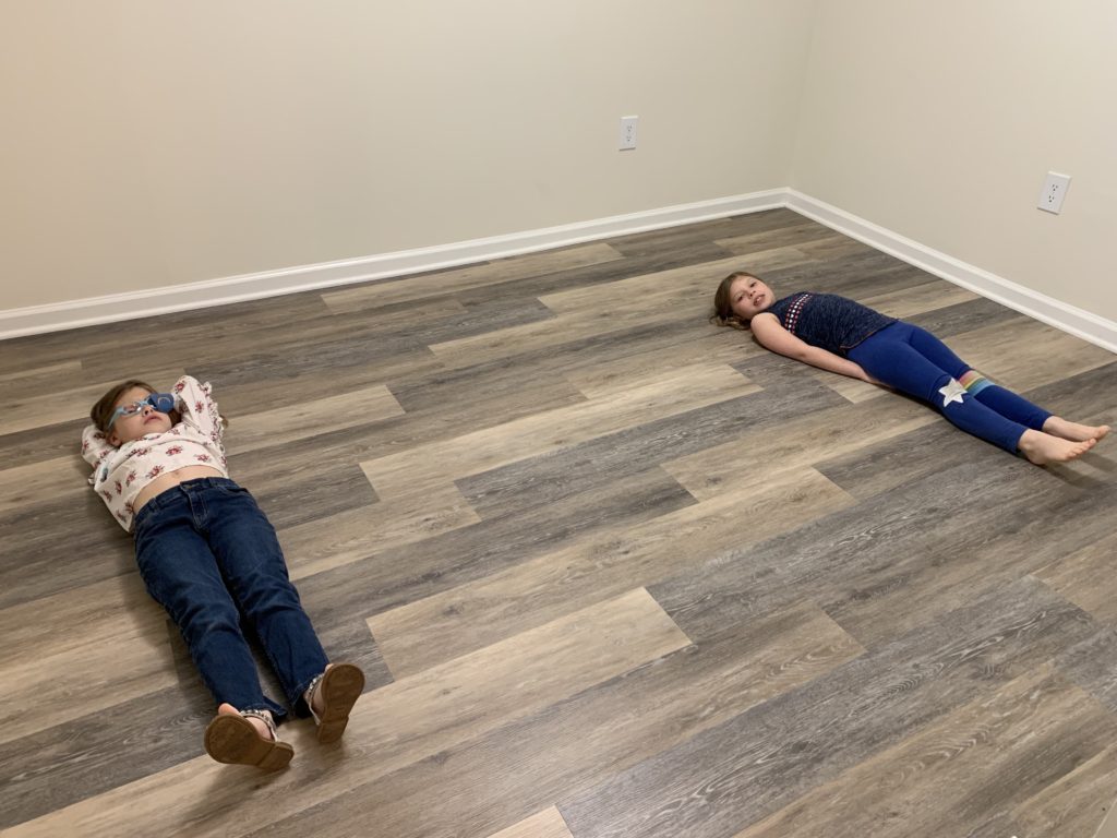 Tonight we went over to the condo one last time before going to closing next week.  Avery and Emerson recreated lying in their cribs.