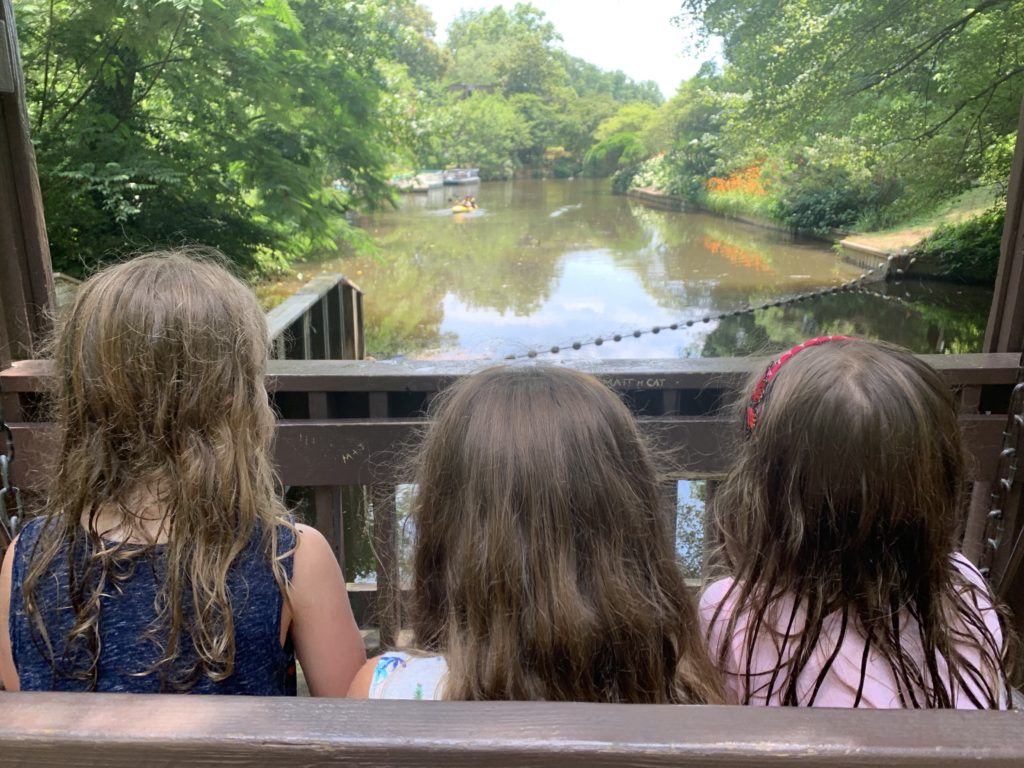 And since Harper was soaked, we figured we would walk by the lake for a bit to dry off. I told Justin to go have a brewski at the brew house we were walking by ….the girls and I were having fun exploring on the path that Justin’s one beer turned into two…