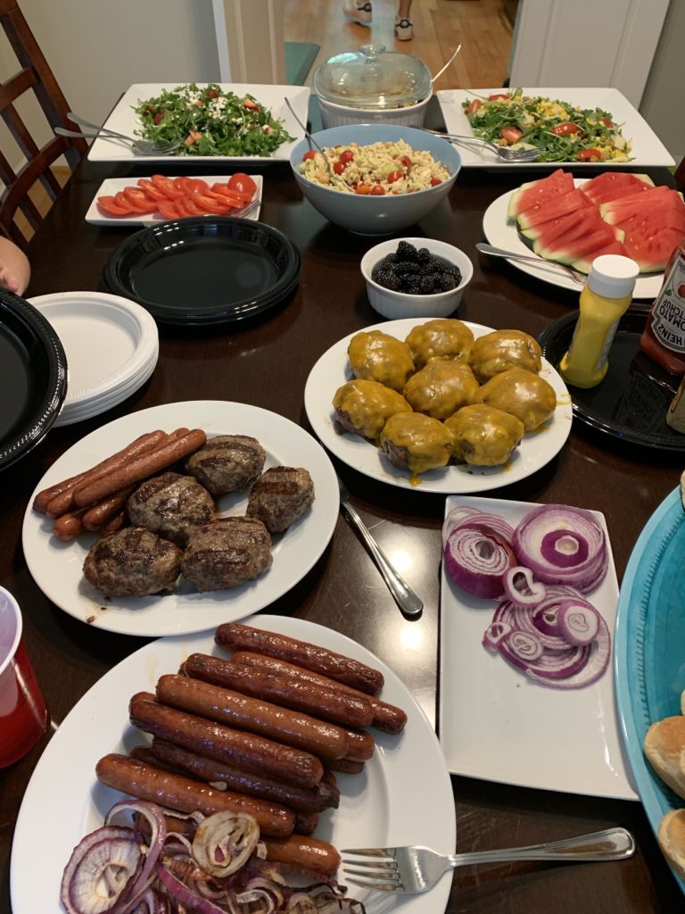 We’re not even halfway through the weekend, and already it has produced more ab flexing laughs then I have had the past few weeks. Friday dinner in the pit was not only a culinary smorgasbord delight (salami, cheese, grilled ahi tuna, olives, fresh bread, grilled brussel sprouts, peaches), but also, it was an eye-watering laugh kind of evening. It stormed outside an hour before dinner (almost a nightly occurrence the past few weeks) so hanging in the pit with a bottle of red after the storm was peaceful and relaxing. Somehow the conversation turned to “wieners”. I asked the girls where they had heard that term…I think their friends, but they wouldn’t say for certain. They thought it was funny talking about how guys have “weiners”. At one point, Harper combined the word “weiner” and penis and the next thing you know, the term “wenis” was being thrown around the rest of the evening! A “wenis”…lol!