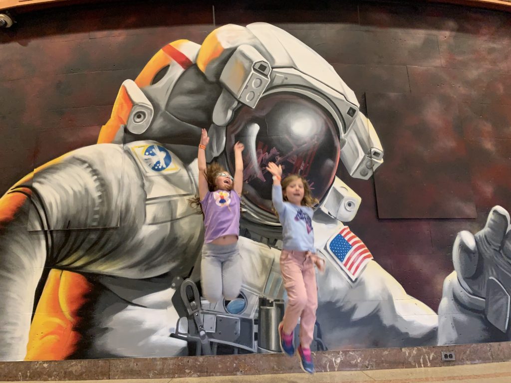 El Vez – El Vez was a great restaurant. Even on Sunday at 5:45, it was packed. The chips and guac were extra; however, they were well worth it. While they didn’t have a kid’s menu, they were accommodating – Emerson had a chicken quesadilla and Avery had a plain steak taco. Harper had some of both. I had the sea bass tacos – they had a sweet potato puree and were scrumptious. Justin had the steak tacos and they were equally good.