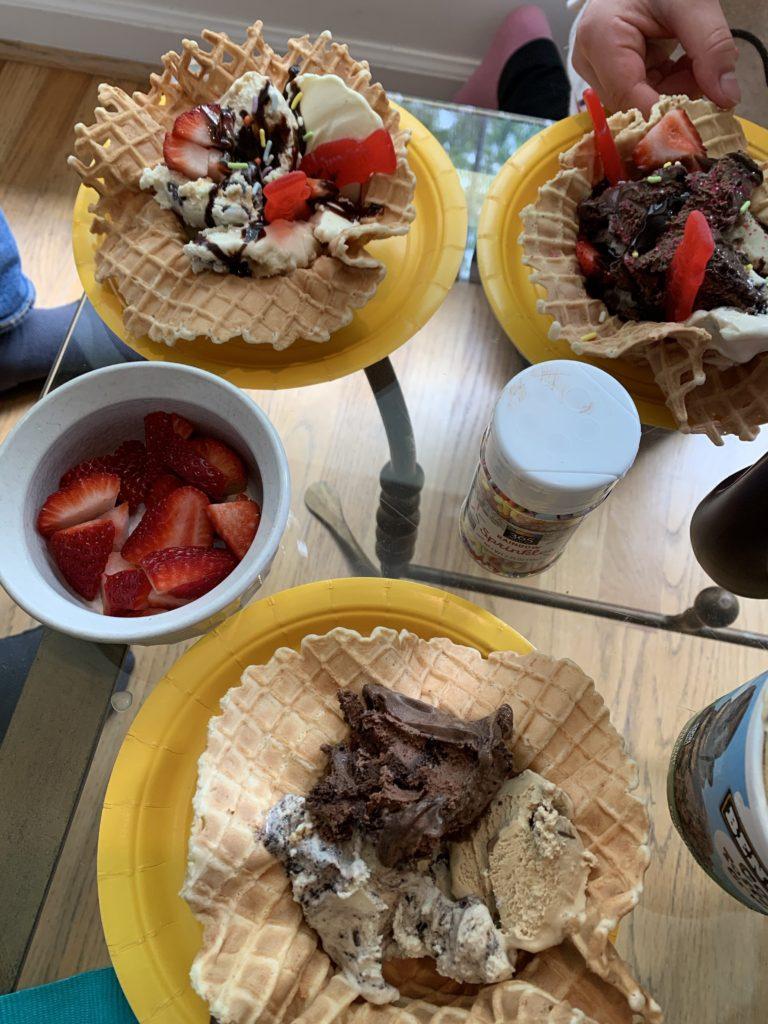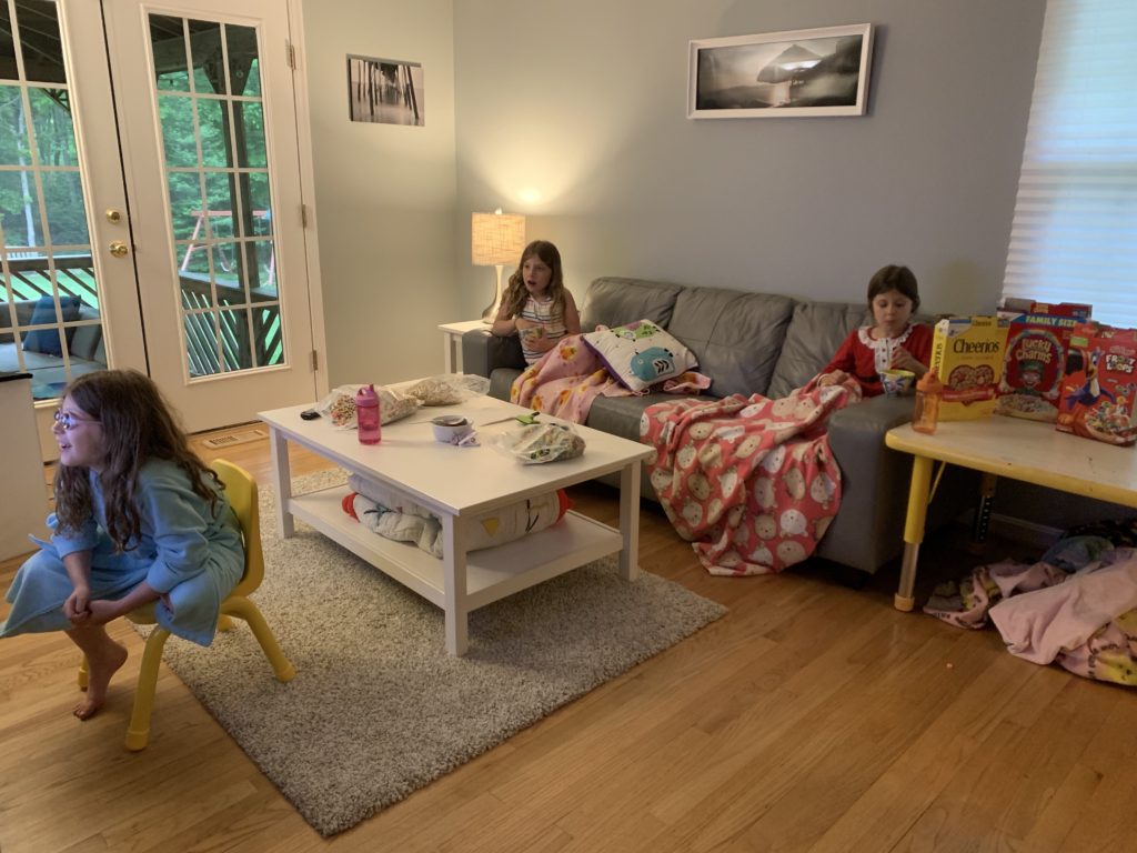 Justin and I had a date night Sunday. We ordered take-out from Clarity and ate in the “pit”…it was delicious…we will definitely need to do it again! Meanwhile the girls “watched” themselves with a night full of sugar cereal and binge movie watching.