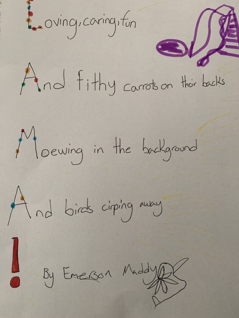 Harper’s poem. I thought a miracle had happened as her spelling was superb…turns out she was asking Google.