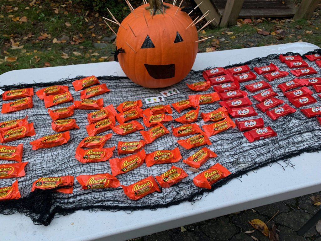The girls were on a mission to see how much candy they could get. Many families left candy on tables so their whole families could trick or treat together or hang out with the adults. The kids liked the ability to take more than a few or select their own candy and not having to walk up the long driveways of some of the houses was an added bonus.