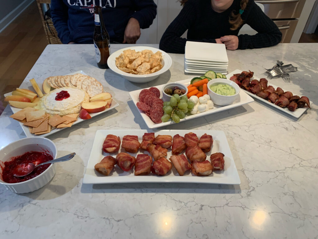 We arrived at my parents around 2:00 and enjoyed charcuterie appetizers along with bacon wrapped goat cheese dates and brown sugar wrapped chicken bites. All delicious. Needing to digest, we watched the annual dog show and went for a leisurely walk in the neighborhood enjoying the unseasonably warm weather.