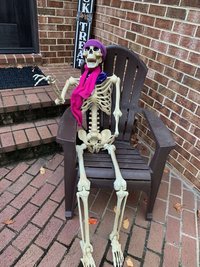 The girls had been asking for a Halloween skeleton to decorate.  We (Stefanie) broke down and got one this year – Meet Boney Tony.