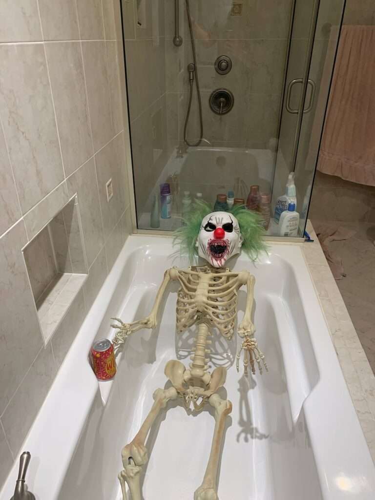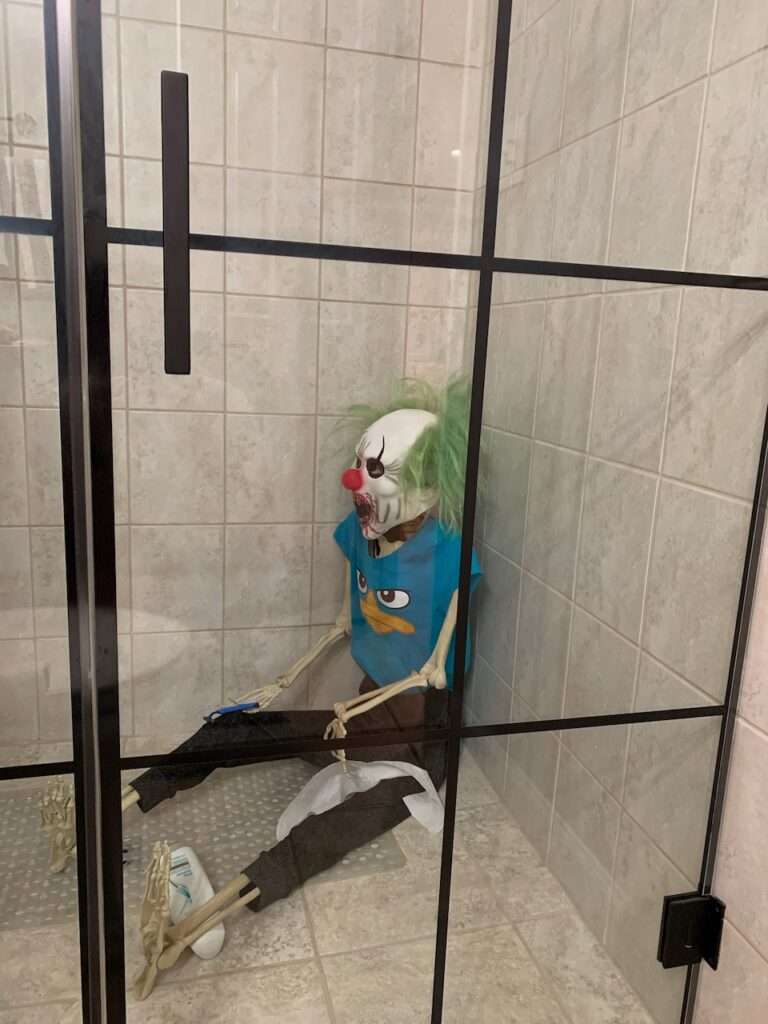 Well, I don’t know how it started but he ended up turning up everywhere! He found the Pennywise mask as well – Harper even created a scavenger hunt with clues about where to find him.