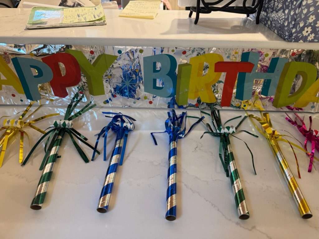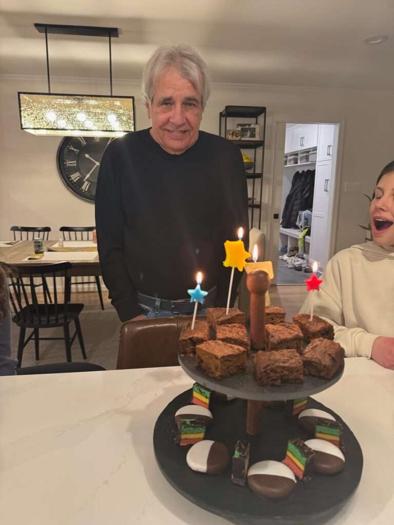 We sang Happy Birthday and my dad blew out the four candles in one breath!