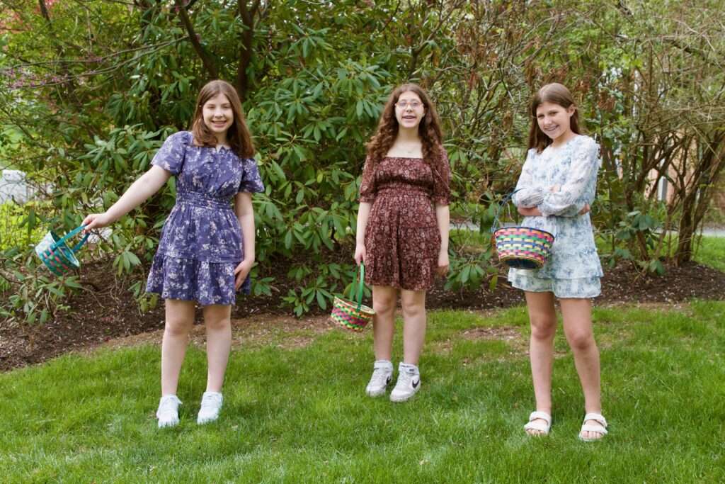 The girls enjoyed an extended Easter Egg Hunt of chocolate filled eggs, hidden in both the backyard and the front yard. Each girl had 49 of her own designated colored eggs and there were 27 “free for all”.