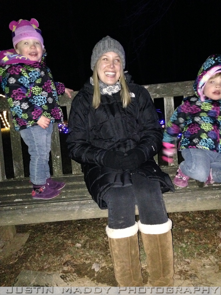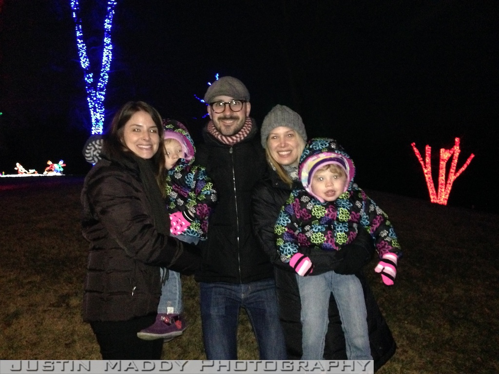Friday evening we took Avery and Emerson to Meadowlark’s Winter Walk of Lights. This year we were lucky enough to have my sister and Gabo accompany us. As much as we wanted to take Harper, we decided it made more sense to leave her at home with my parents since it was so cold out. We ALL bundled up and had a great time. It was awesome to see the girls enjoy the lights so much and it was really cool to see the girls (especially Emerson) interact with my sister. Emerson wanted to hold Auntie Lauren’s hand and follow her everywhere she went. It actually made me sad when I said goodbye to her that night as she and Gabo were leaving for Guatemala the next morning. I didn’t grow up very close to my aunts and uncles or cousins and my girls likely won’t either…unless my sister and Gabo move back to the states one day once the baby making begins. What do you say there Auntie Lauren?