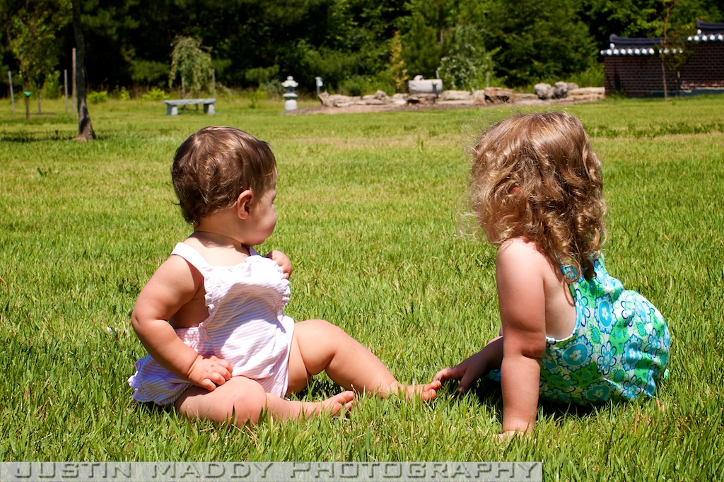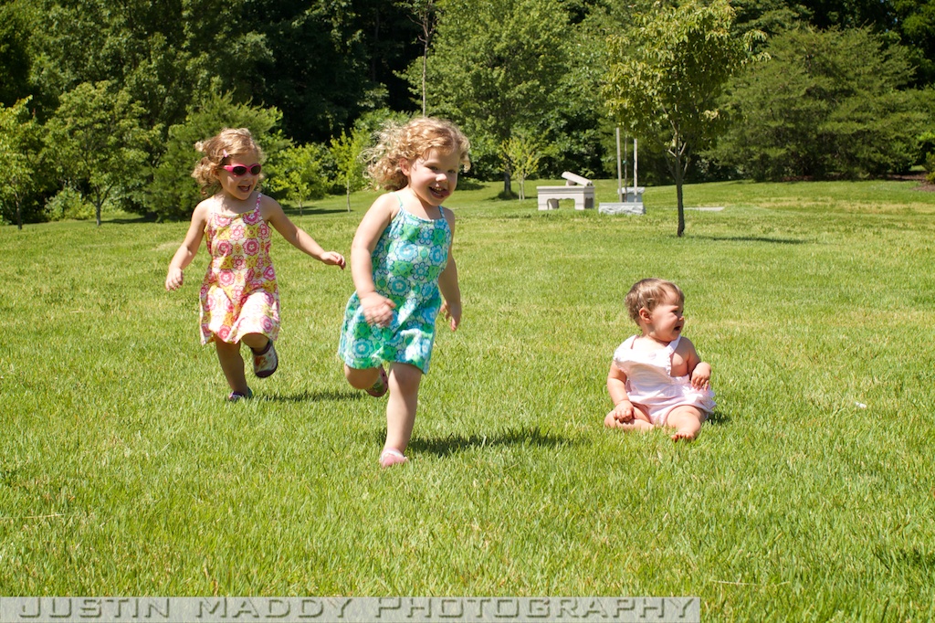 I thought if I placed Harper in the grass the girls could run on opposite sides of her and we could get a picture of all three of them and the girls would be more cooperative since it wasn’t as staged.