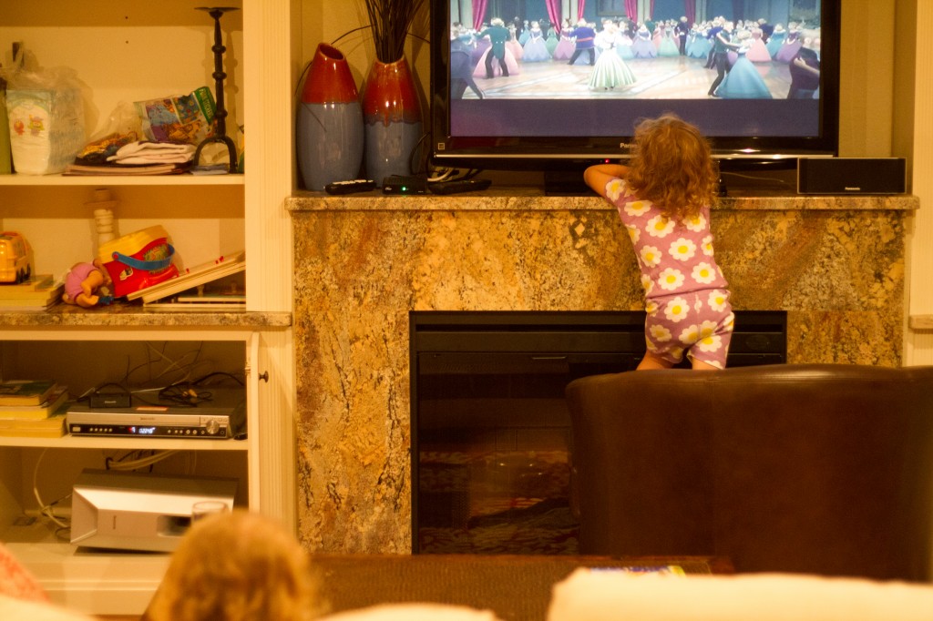 Tuesday night the girls watched their first movie! They watched Frozen….which Avery sometimes calls “Cold” when she can’t remember the name. We weren’t sure if we were going to let them watch the whole movie in one night but they both did great. Emerson stayed glued in one spot on the couch silent the entire movie. Avery stood on a chair in front of the T.V. and did a combination of watching but her share of talking throughout the movie (mostly related to the movie though) .