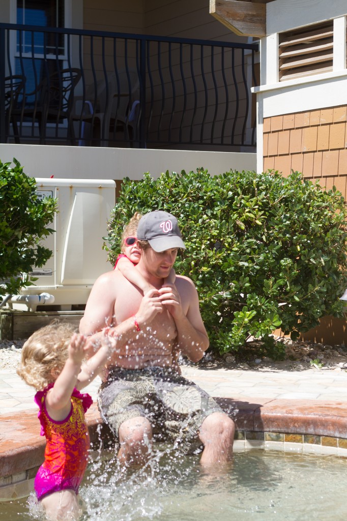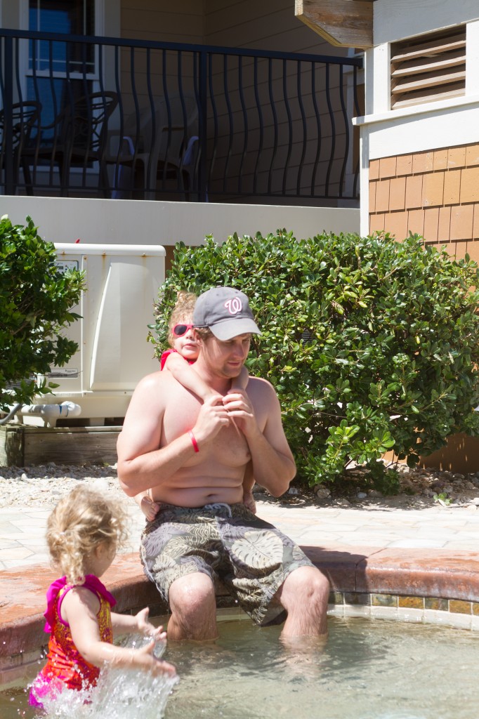 Monday – Can we say windy! The winds were insanely strong Monday…so strong in fact that swimming was not allowed at the beach as the rip tide was extremely strong. We spent the first part of the morning at the pool. The girls had a great time playing in the baby pool and the hot tub. YES, the hot tub. The pools hot tub is unlike anything I have ever seen before…first of all it is huge…and it is almost like 5 little hot tubs in one….but in addition to that there are always lots of kids in it. At first, I thought the girls were too young for the hot tub but after seeing all the other kids in in…many as young as Avery and Emerson I guess you could say I followed the crowd…and you know what, I’m glad I did….because Avery and Emerson loved the hot tub…and again every time they are in it, I think to myself holy crap, they are becoming kids!