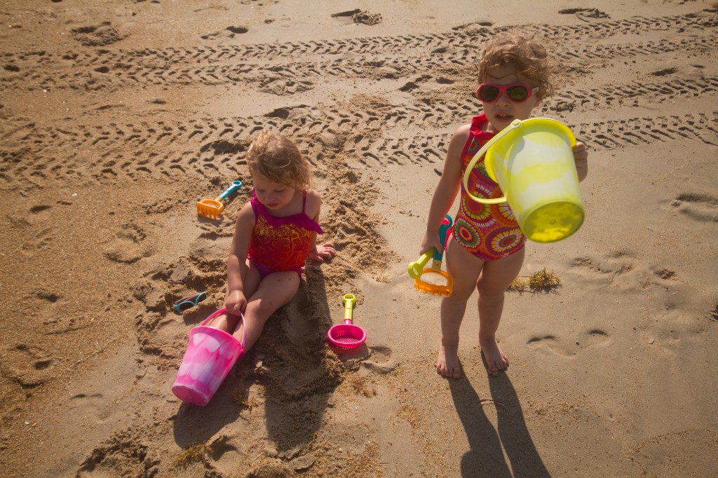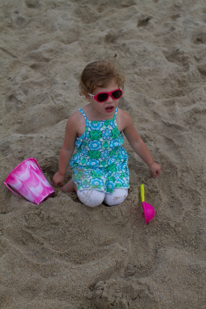 We spent the morning at the pool, followed by the afternoon at the beach. The girls both got buried in the sand courtesy of Karolin. And Harper even had a fun time playing with the pails and shovels.