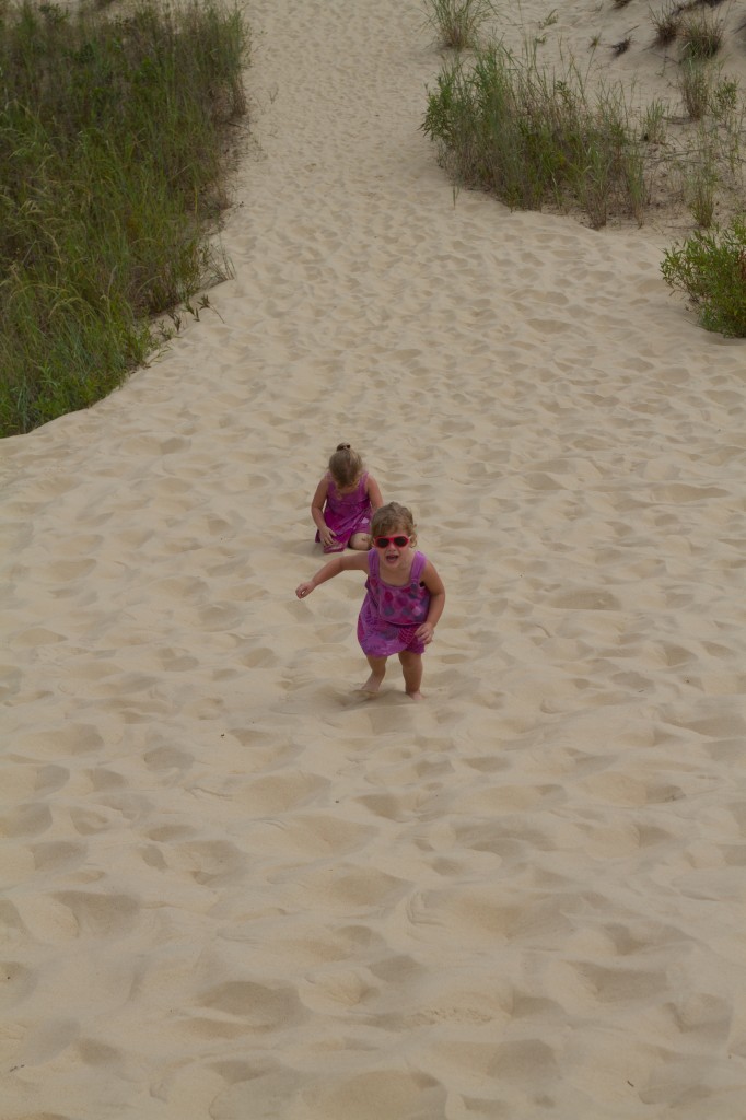 Saturday – Our last full day of vacation….the last day is always bittersweet because in the back of my mind I know that vacation is coming to an end. We decided to visit Jockey’s Ridge Sand Dunes in the morning. The plan was Justin and Karolin would take Avery and Emerson while I stayed behind and walked the neighboring trails with Harper as she slept in her stroller. The plan didn’t work out too well as the girls had a little bit of a meltdown. They made it up a short way before they claimed they needed water or wanted to be picked up.