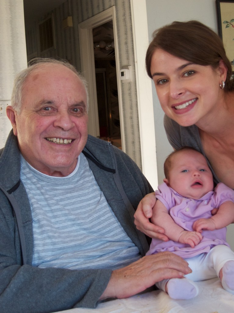 As my Grandpa, there were two recurring stories that you loved to tell me….and each time you told it, it was like you had never told it before….I’m not sure if you didn’t realize you had told it before or you truly just loved the story that much…I tend to think it was the latter….anyway, the first was with regards to my birth…..35 years ago!…you would always tell the story of hopping on a plane right away upon my birth to meet your first grandchild…and then how you were able to identify me right away in the nursery with my full head of black hair. Then there was the story of how I would run down the hall at the Rotunda (the condominium I lived in until I was five) every time you came to visit.