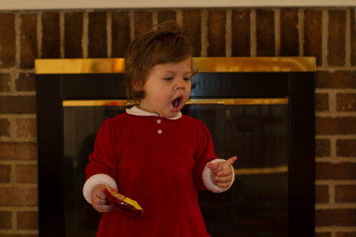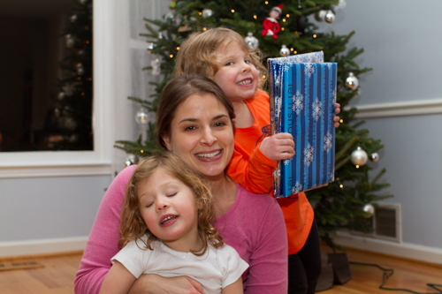 Christmas morning the girls woke up and actually wanted to get dressed before going downstairs. They went down the stairs slowly in anticipation of what Santa had left them. While I didn’t think the girls received that much stuff, it literally took us all day to open presents as we opened presents in three rounds…stockings first, followed by breakfast and cleanup, followed by Santa’s presents and some presents under the tree, followed by a break while Harper took her morning nap, followed by more present opening in the afternoon, followed by an incredible dinner of beef tenderloin, followed by more present opening with Grandma and Grandpa. Here are a few favorites from the events of the day.