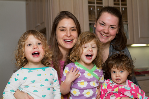 This holiday season with the girls was really special. Avery and Emerson are at an age where they are starting to understand the traditions of Hanukkah and Christmas. We did a lot of holiday related activities at home and they did quite a few at school as well. At home, the girls made a Gingerbread House with Karolin and every so often I would catch them standing on a chair trying to sneak a bite of candy of the Gingerbread House. They also made Christmas cookies with Karolin on Christmas Eve. With Mommy they made a reindeer face on a paper bag and snowmen out of stickers. With Daddy, they made a menorah with beads. At school, the girls made glittery Christmas Trees and snow globes and angel ornaments for the trees.