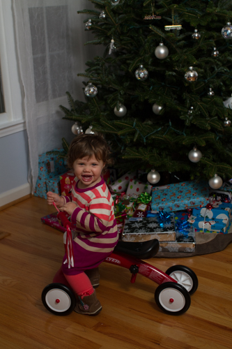 Christmas Eve we went to church service at Vienna Presbyterian Church as we have for the last three years. This year we actually made it through the service without having to accompany an unattentive child out of the sanctuary. The girls wore their new Hannah Anderson dresses and looked super adorable. I had wanted so badly to get a picture of all three girls together in front of the tree but we weren’t so lucky. At least we got one cute one of Harper on her new trike from Gigi!