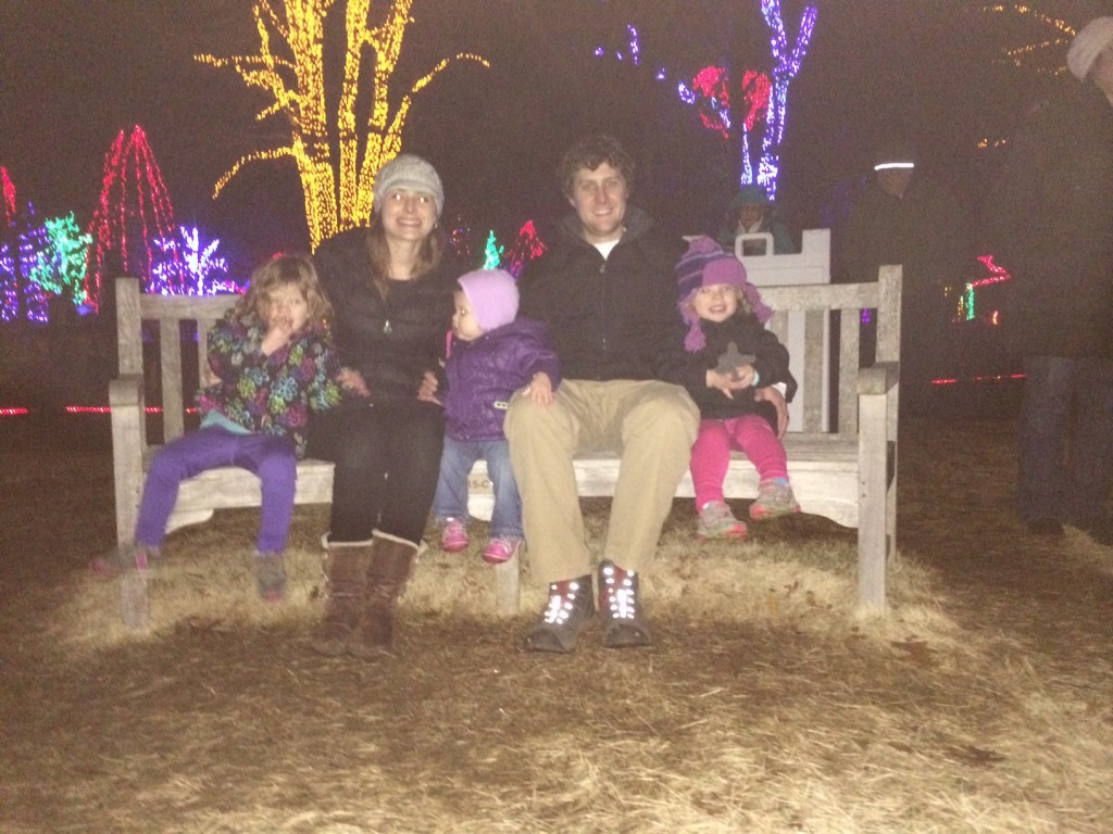 The day after Christmas the family including Karolin went to Meadowlark’s Winter Walk of Light’s. The girls loved seeing the lights and dancing to the music and light show. A little blurry…but a picture of the five of us!