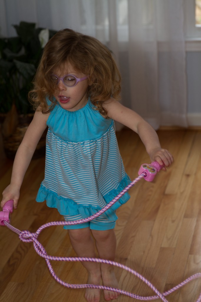 The Easter Bunny came through the open dining room window and left these baskets for the girls. We assumed the peeps were left for Daddy:)Avery couldn’t wait to test out her new jump rope!