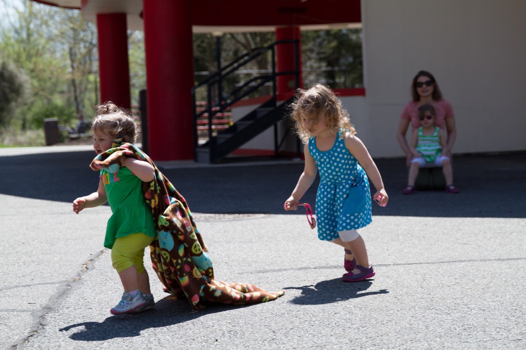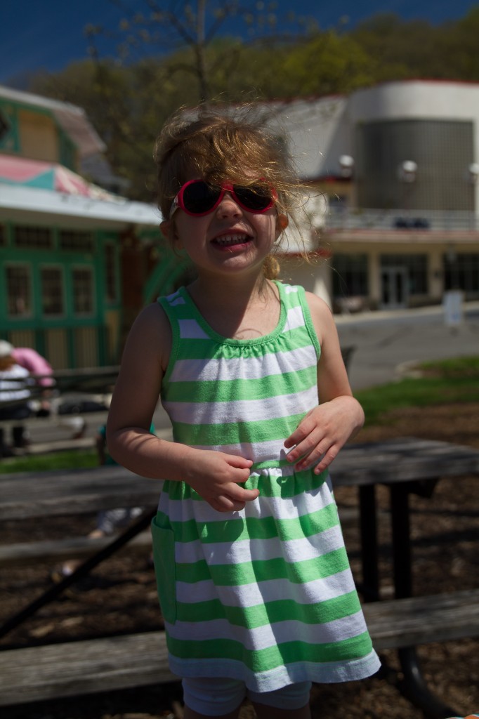 While Justin and I both enjoyed the hour plus we were at the park as we love being outside with the kids, we both couldn’t help but feel an overall sense of disappointment. The park was an amusement park starting in the early 1900’s so it still has the old amusement park look. Today the park has art studios, dance classes, a small playground, a restored carousel, and other visual arts and performing arts classes. But unless you go on a family day or another time where there is a big event, there truly isn’t a whole lot to do unless you plan for one of the classes in advances. They did have a puppet show while we were there but it was recommended for kids ages five and over. Anyway, we tried to get a few pics of the ladies together…these were the results…