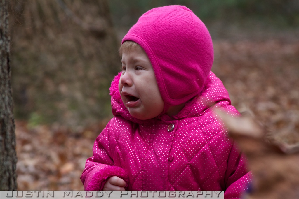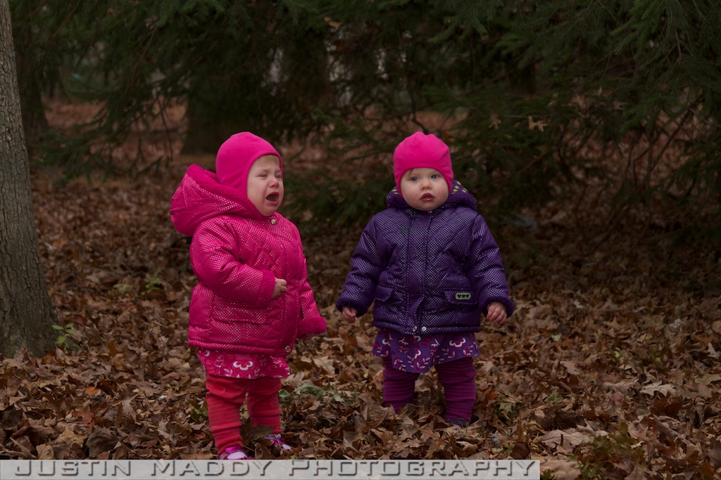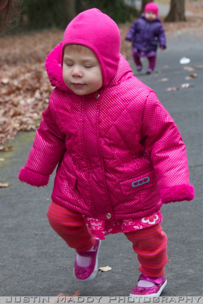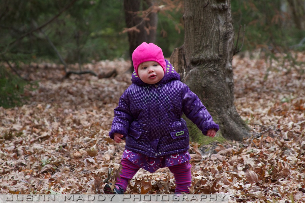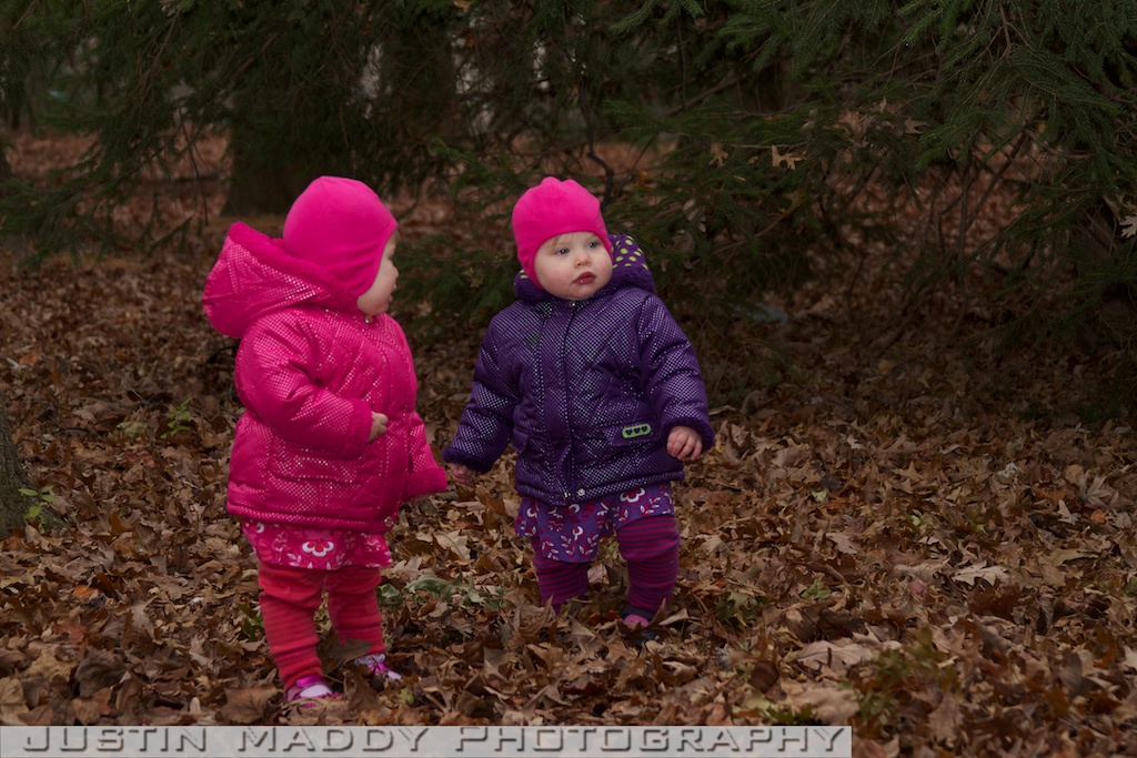 We decided we would have better luck if we only featured the girls on the holiday card. Odds of having two people look good vice four were much better. So we took the girls to Glyndon Park and had them run around in the leaves and play on the swings. The leaves were a little scary to Avery but once she was in the swings she was having a blast. Emerson had us cracking up because she was picking up logs and trying to move them.