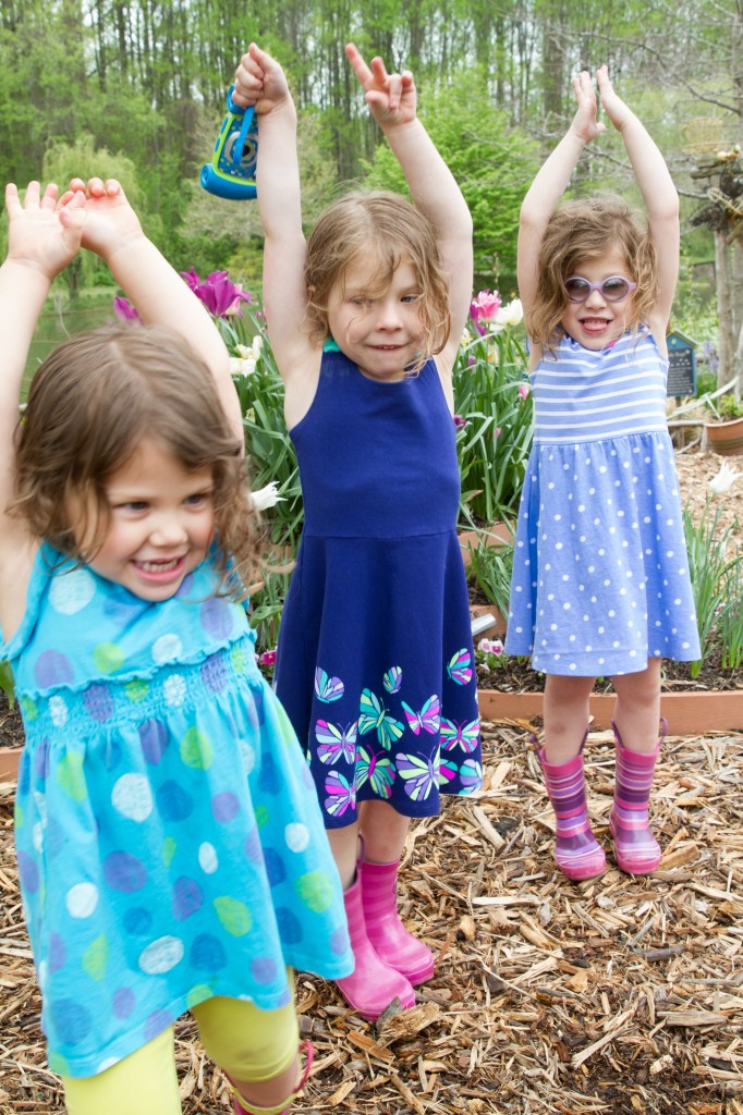 My mom and I took the girls to Kohl’s yesterday and I bought them (okay mostly Avery and Emerson) new clothes to play in. I really didn’t buy them much last year and they literally have only a few pairs of pants left that fit them and are without holes or stains. Everything was 50% off and I had another 30% off coupon so I the dresses that Avery and Emerson are wearing I got for $7 each. And the dress that Harper is wearing is a hand me down from Avery and Emerson….Gigi actually got it for Avery and Emerson a few years ago!
