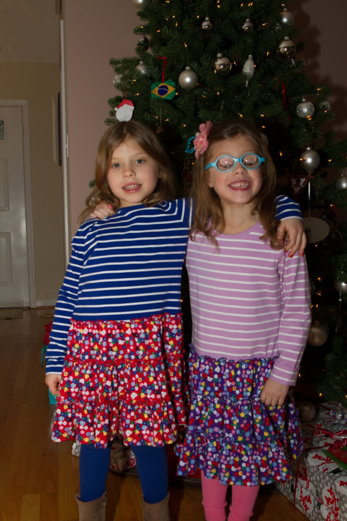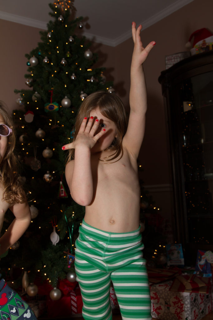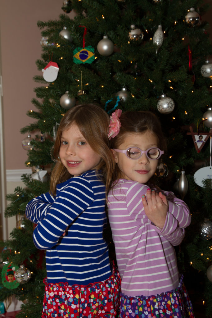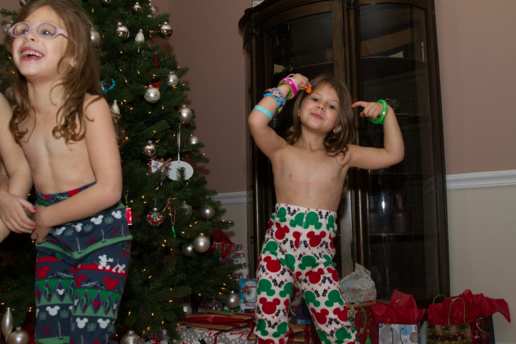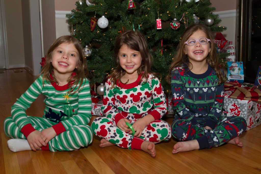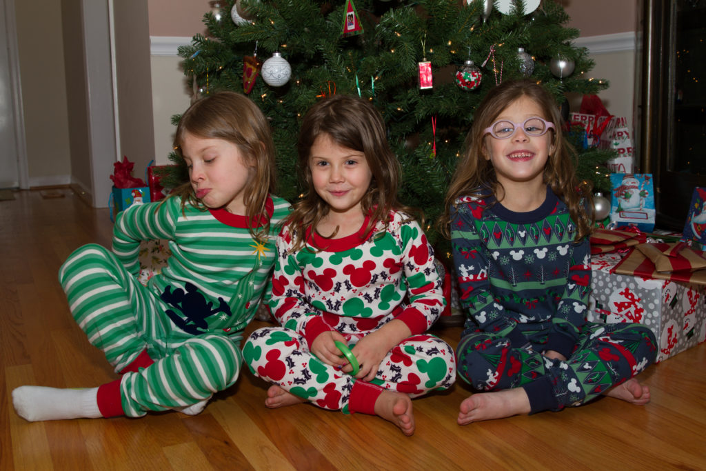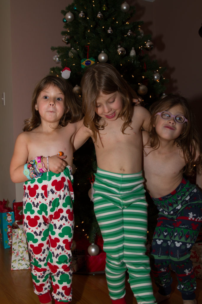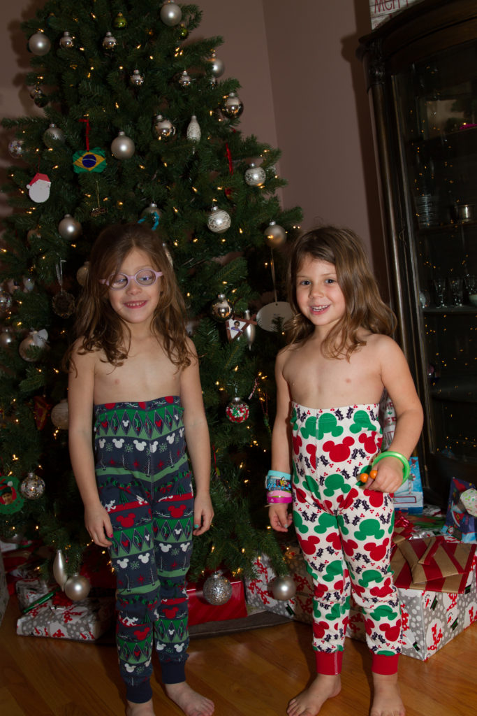 When we got home, the girls took a few more pictures in front of the tree in their new Mickey Mouse Christmas Hannah Jammies.