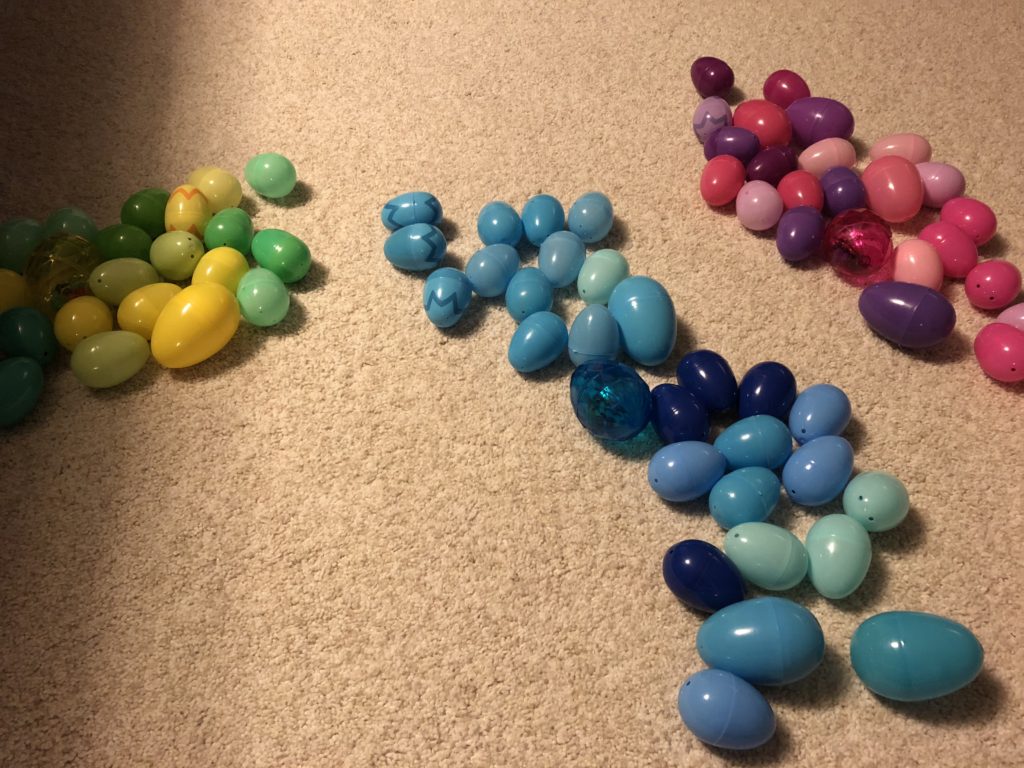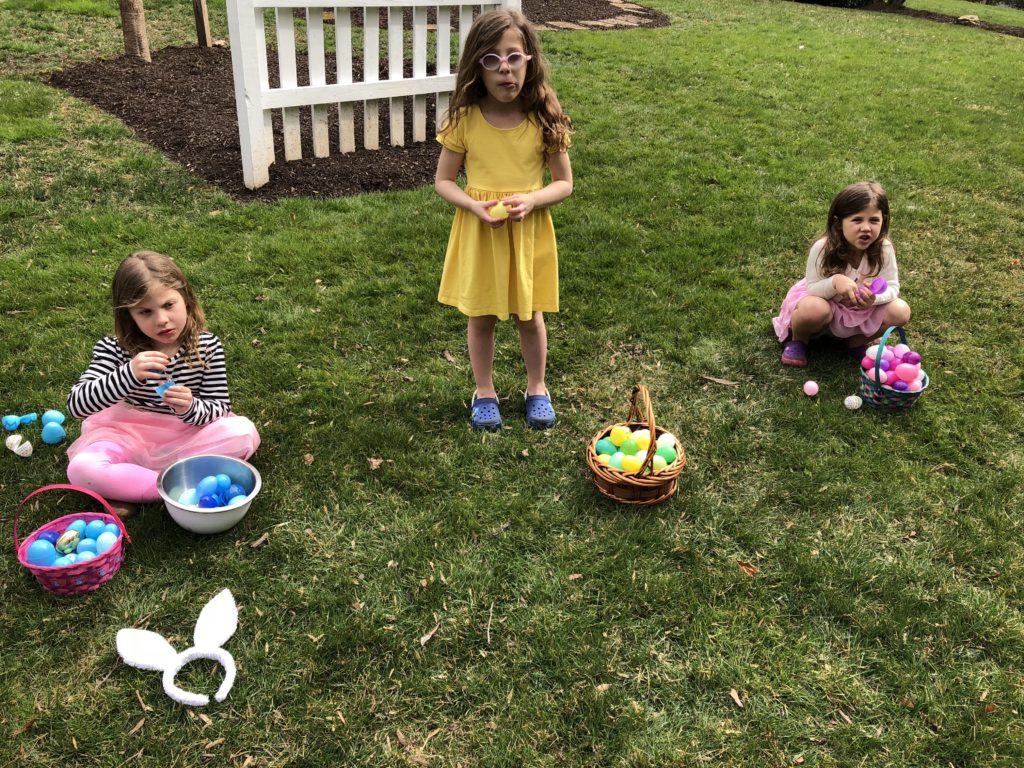 This year the girls had designated color eggs with some extras that were a free for all. Avery was green/yellows; Emerson was blues; and Harper was pinks/purples.