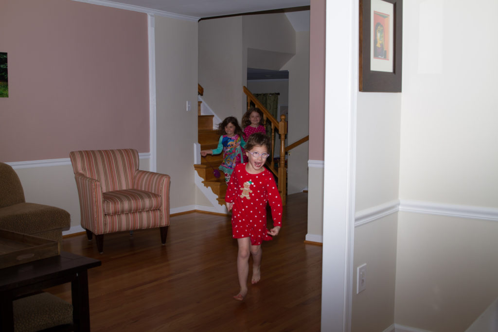 The girls woke early and nicely played in their rooms until a few minutes after 8:00 when Justin and I were finally ready to get out of bed. The Easter Bunny didn’t disappoint! I love the girls excitement as they rush to see what the Easter Bunny brought them!