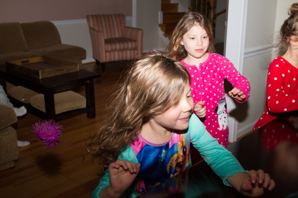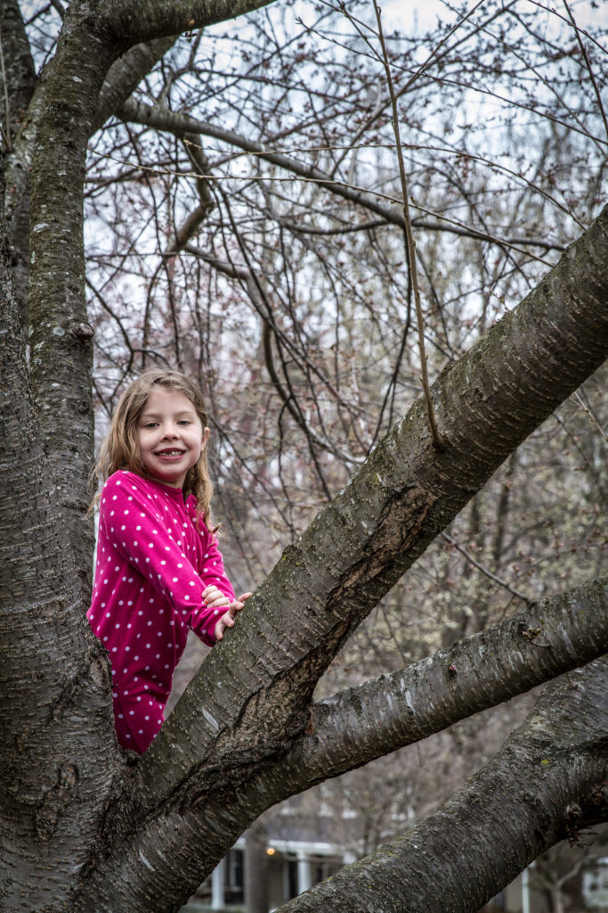These happy girls played outside with their jump ropes, bubbles, and climbed trees before breakfast.