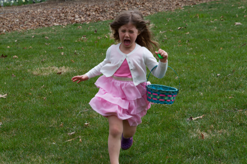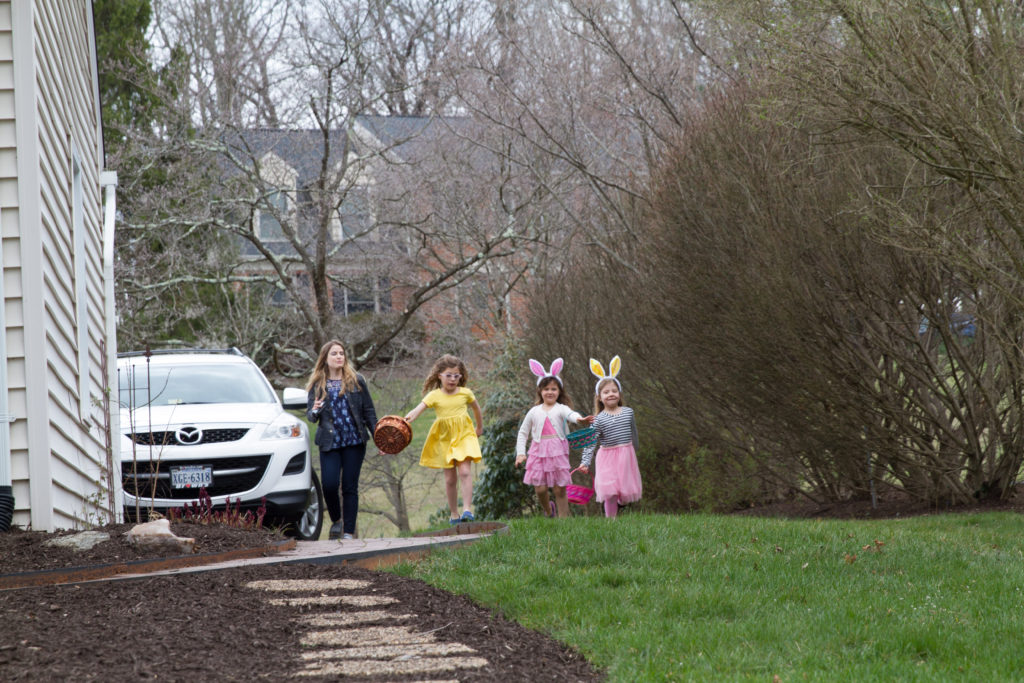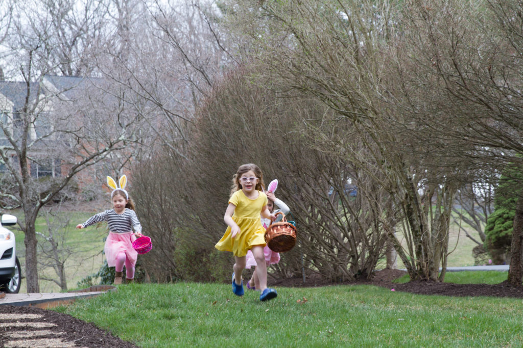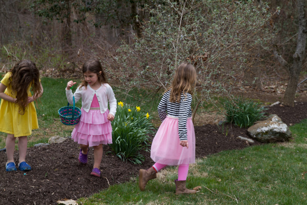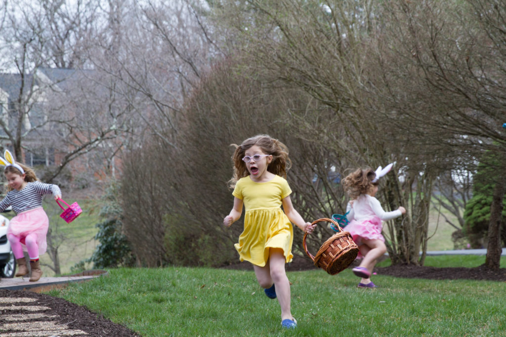 Staged pictures were followed by the traditional Easter egg hunt in our backyard. And they are off!