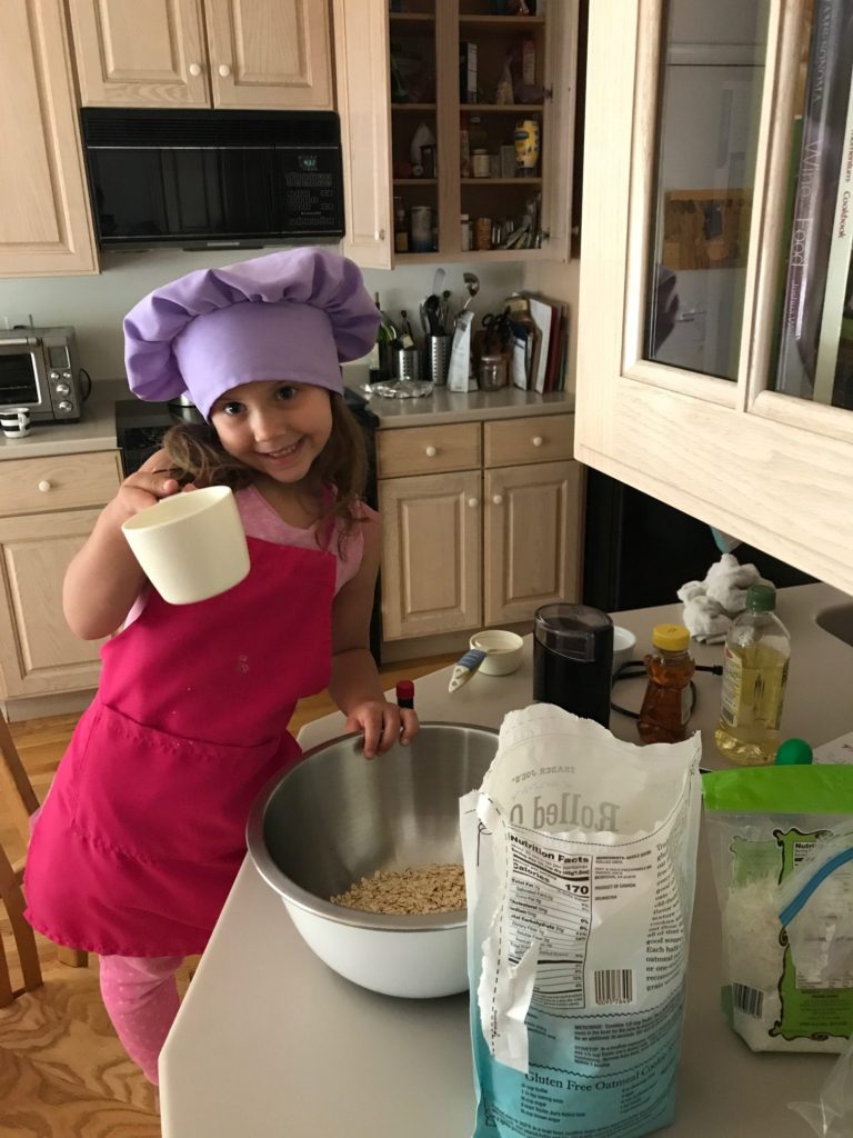 After breakfast she helped me make granola before riding her bike up and down the street in her pajamas. I can confidently say that even with all the anticipation – I think she had a great time!!