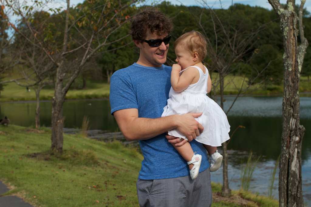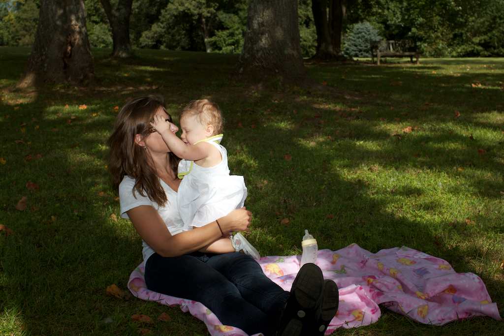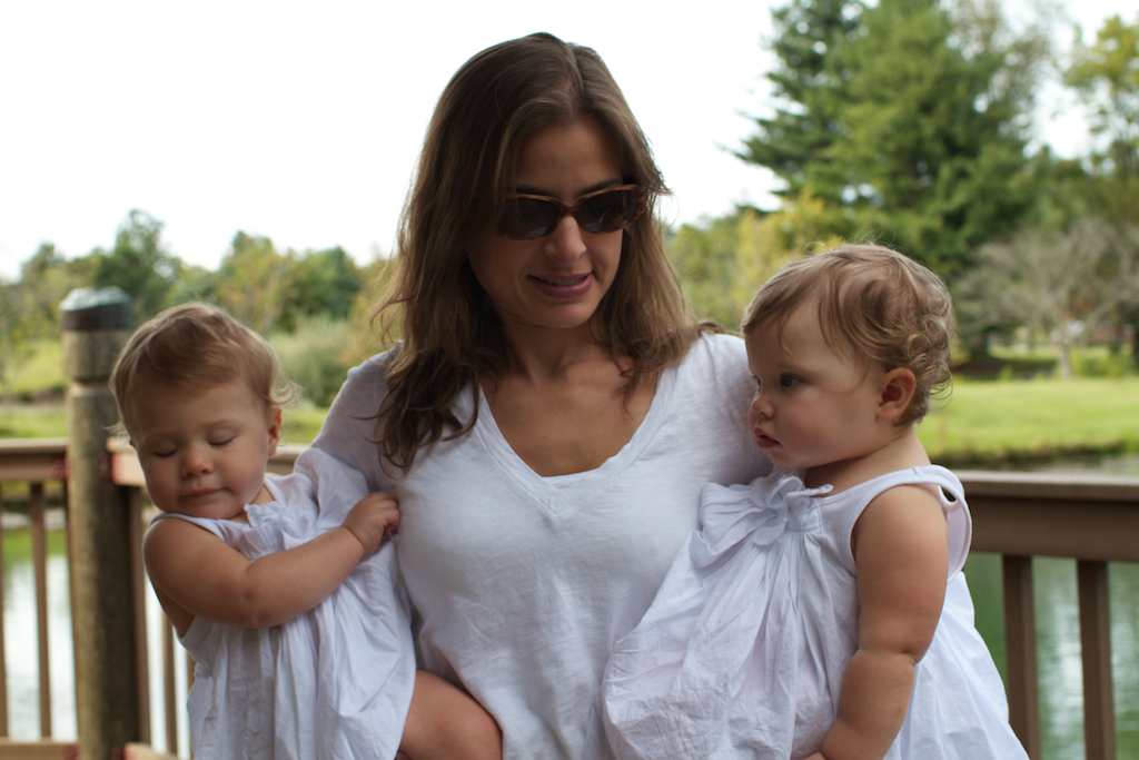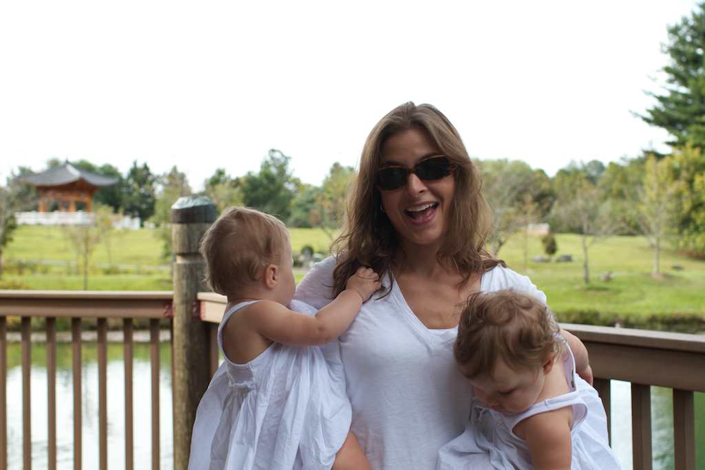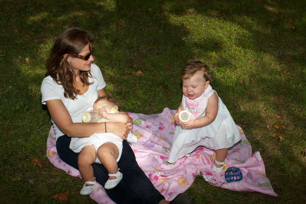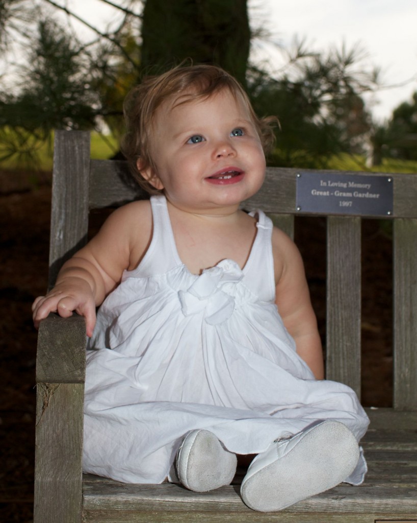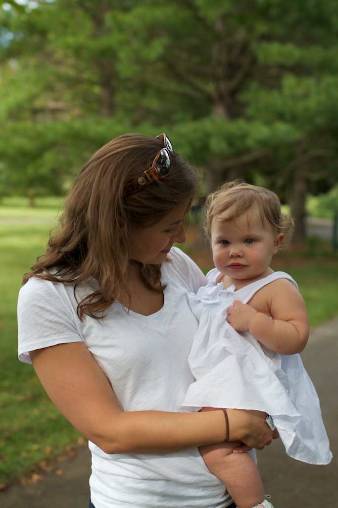 I’m not very good with the computer so it took me a few weeks from the time I decided to blog to finally set one up…Thanks hubby!!   My birthday weekend was a few weeks ago but it was SO much fun.  Saturday we took the girls to Meadowlark.  The weather was  nice and sunny.  We dressed the girls in their white dresses, the ones we used for their 1st birthday pictures.  I figured they would grow out of them before the next warm season.  So we put a blanket down and attempted to take pictures of the girls together.  Needless to say the idea worked better in my head than it did on paper. Emerson kept running away the second I placed her down and Avery kept moving as well.  We got a few pictures; albeit not the ones I pictured in my head.   After realizing a true photo session was not going to occur we walked around the gardens and looked at the fish and the ducks.  Avery even started saying duck! The girls would not stay on the blanket alone as I had planned so I had to sit with them and even then I still had one “runaway”.  So here is just me and Avery.