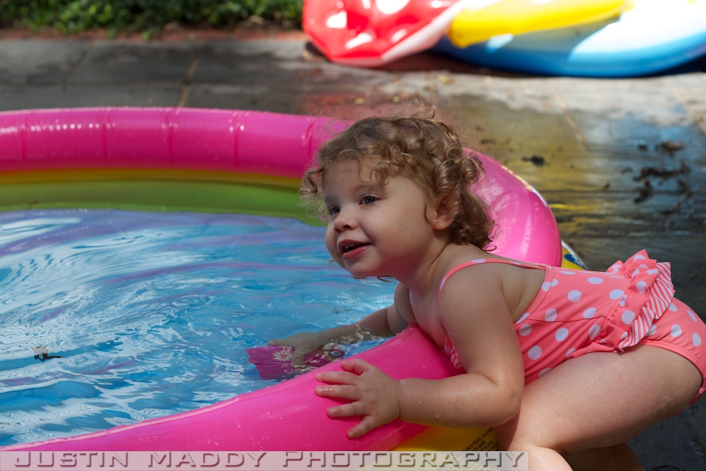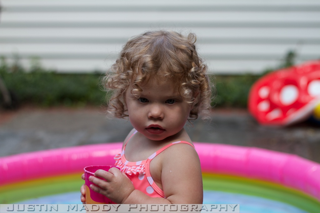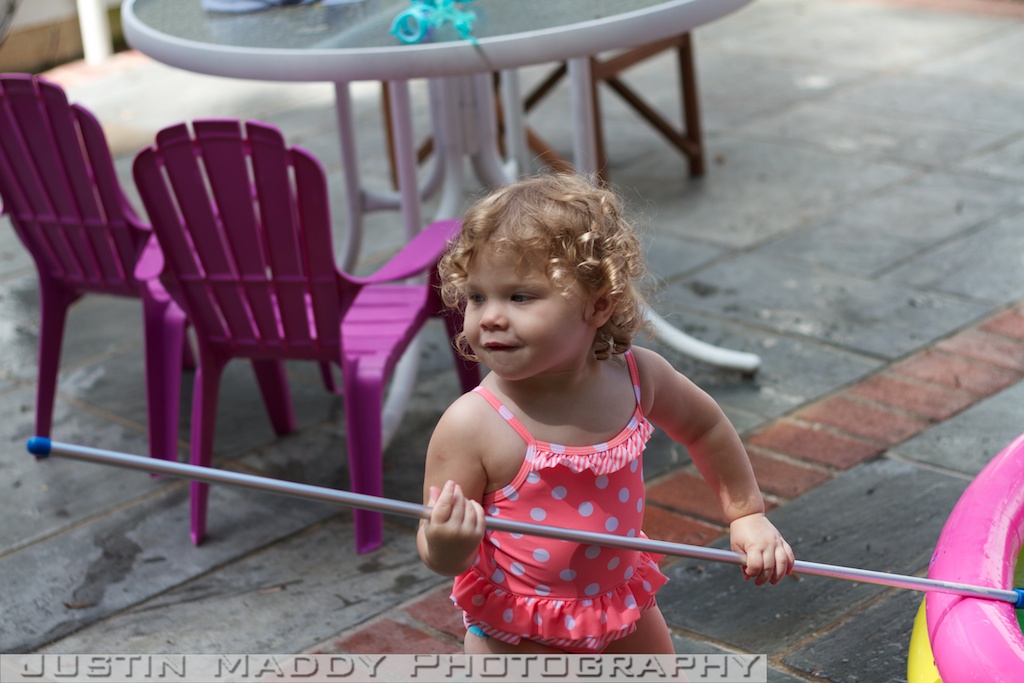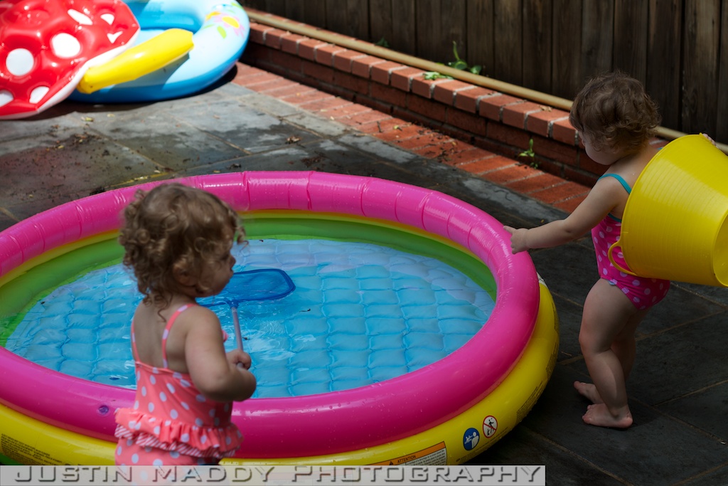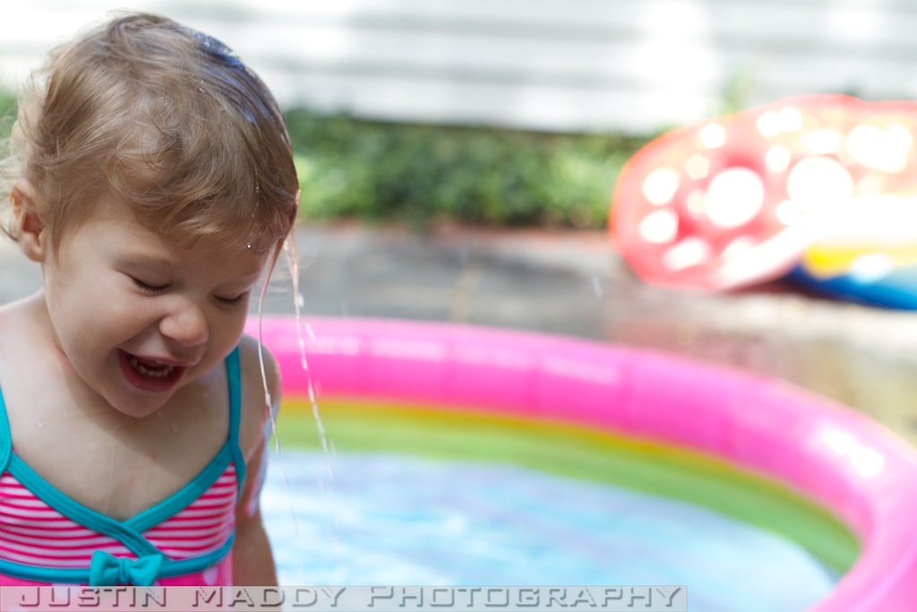 We also got them a new little pool this year. We tried the mushroom pool that they used a whopping one time last year and once they got in it, we could see that they clearly had outgrown it. Their new kiddie pool is bigger and doesn’t have a cover so it is less restrictive. The girls like filling their cups with water and pouring the water on the chairs, adults, or any other object outside the pool.