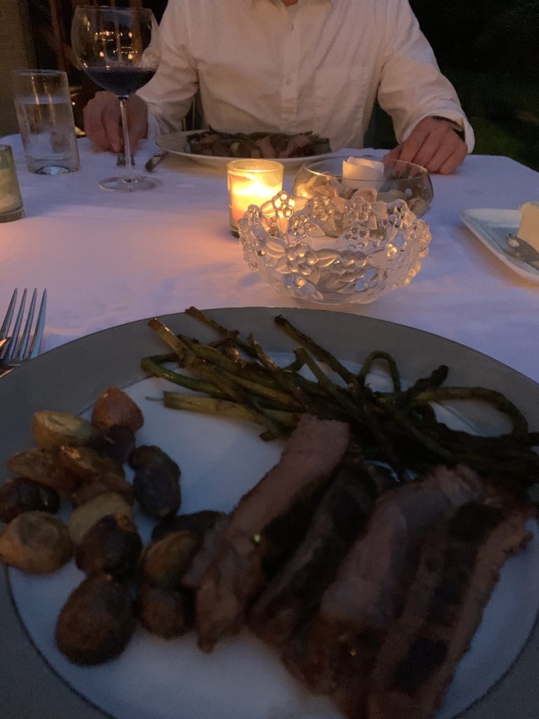 Your present to me this year was certainly one of my favorites….a delicious steak dinner cooked by you (no cooking for mama) and served Italian style by three novice waiters.