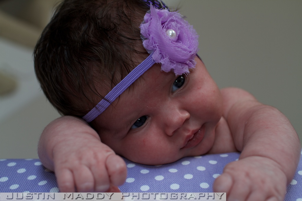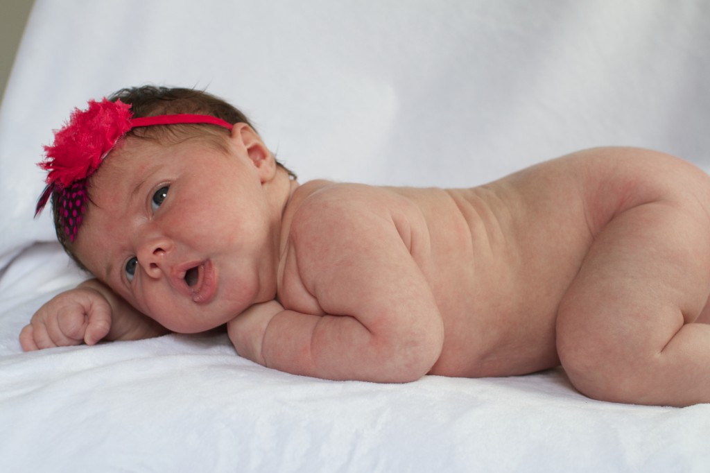 Harper is still such a good baby….honestly from her temperament to her feeding and sleeping schedule, she is awesome. She has never had her days or nights confused and basically only wakens for one feeding. I usually last nurse her around 11:30, nurse her again about 4:00 or 5:00 and then not again until 7:00ish….not bad for 4 weeks old! She certainly does make up for it during the day as she nurses almost every 2 hours much of the day; however, she takes 10 minutes or less on average to nurse so I can’t complain. We’re still working on her birth announcement (sigh) but should hopefully have it finalized this weekend. I purchased some bows from Amazon last week and was happy with the way the pictures turned out….not sure why we can’t figure out this birth announcement thing. Here are some of our favorite pictures from the past month. These first pictures Harper was only 5 days old….hard to believe as she looks older than that!