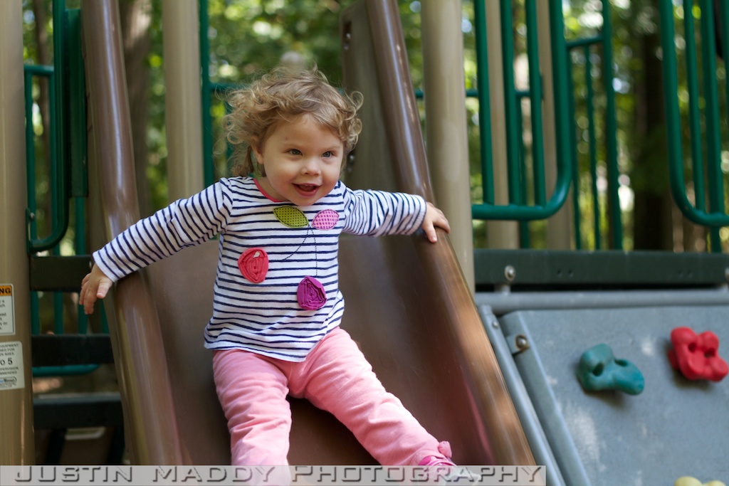 While the girls had a blast playing on the swings and the slides, Harper quietly sat in her stroller and watched her big sisters play.