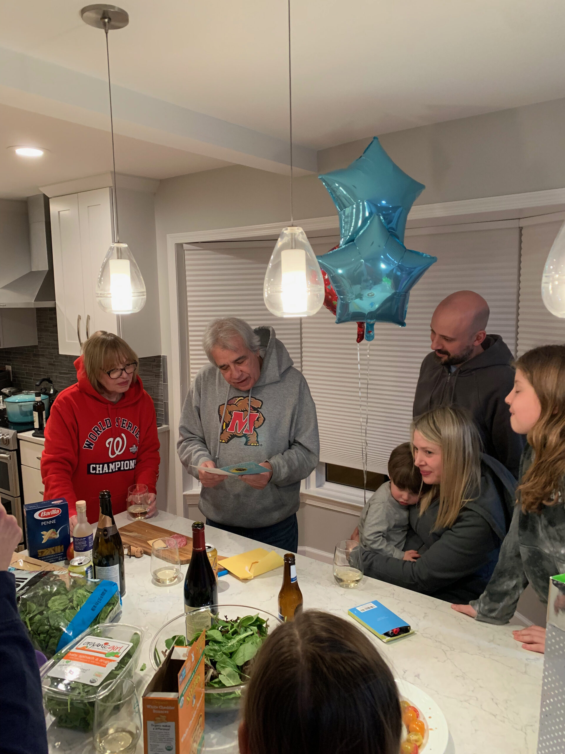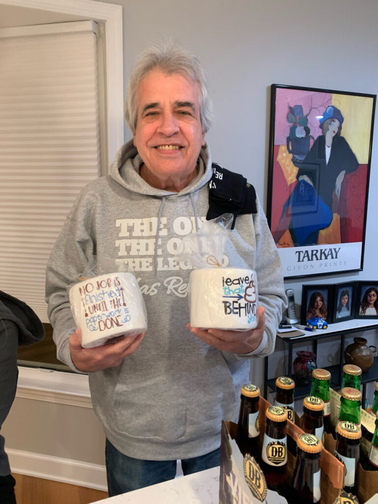 My mom made lasagna, which she rarely makes anymore, so my dad knew something was up when he heard she was cooking! We got him a hoodie that said “The man, the legend, has retired”, a T-shirt that said “I worked my whole life for this” and some gag gift toilet paper that said “Leave that S**T behind” and “No job is finished until the paperwork is done”. My sister gifted him with some of his favorite beer.