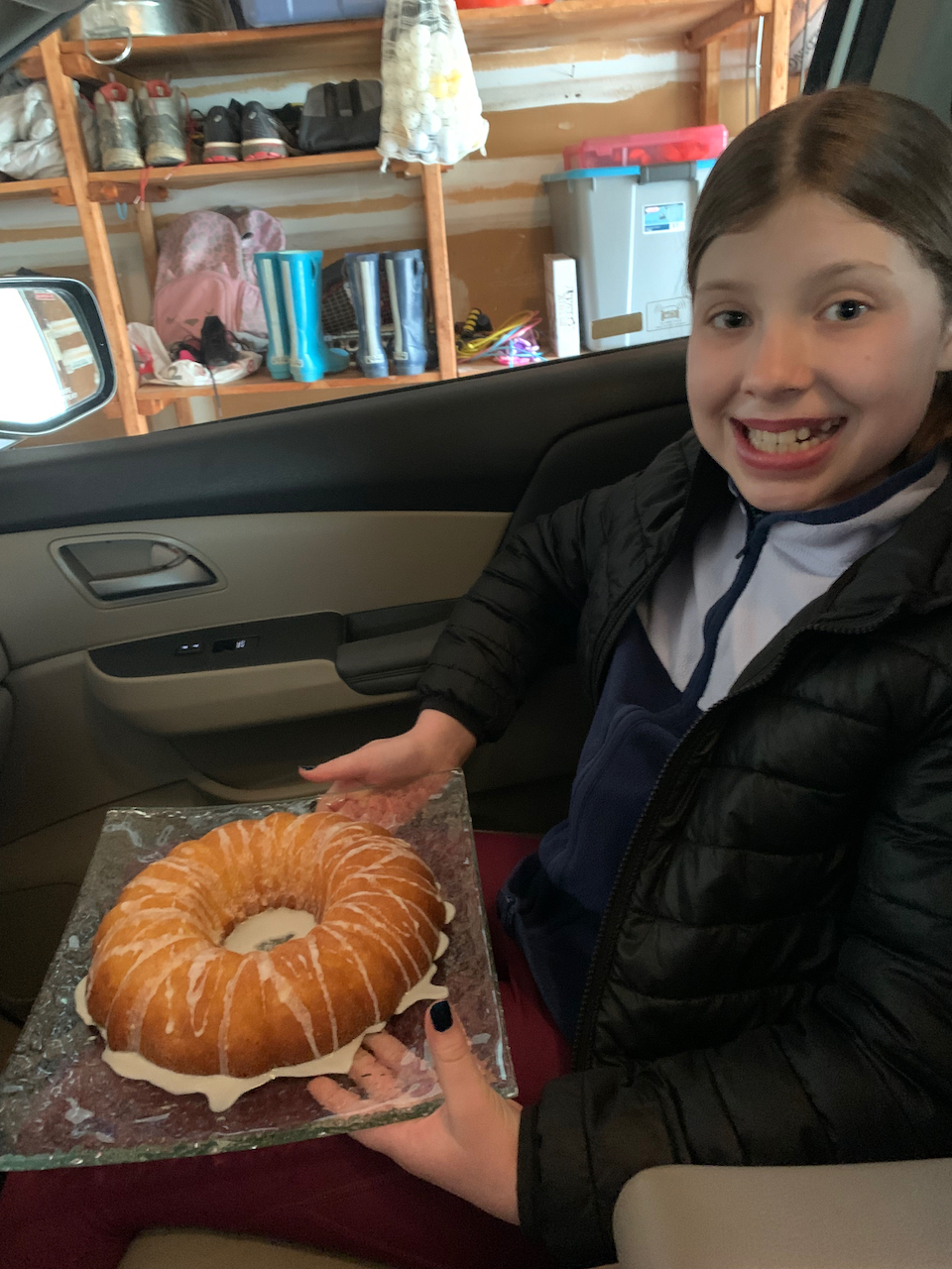 Emerson – Emerson chose to make a lemon bundt cake with lemon icing. Her first one was delicious but the top stuck to the pan! SO, she had to make it a second time. The good news is that we were able to taste the first one and make a few slight modifications (slightly more lemon zest) and it took her considerably less time to make the second cake since she knew what she was doing. She made a delicious icing Sunday, and her cake earned her 3rd place!