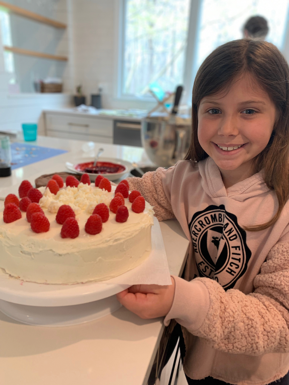 Harper – Harper made a zebra cake. The recipe was somewhat complex and the amount of batter that the recipe should have yielded came up short and I’m still not sure why. With my guidance we split the two batters but the chocolate was so much thinner than the white batter. To thicken it up we added flour, which changed the consistency. There was leftover chocolate batter so Sunday morning I made a small cake with it so we could taste the cake. Harper said it was good, but truth was it was pretty bad! I was almost about to tell her we were going to make a new cake to go along with the delicious cream cheese buttercream frosting and raspberry filling she had made. But I quickly realized it was her cake, not mine, and she was happy with it. I helped her ice the cake…I probably did more than I should have with actually icing it…the perfectionist in me really wanted to test out my skills on the turntable! Turns out the competition cake was better than the one I made that morning with the leftover batter. Harper earned herself 2nd place!