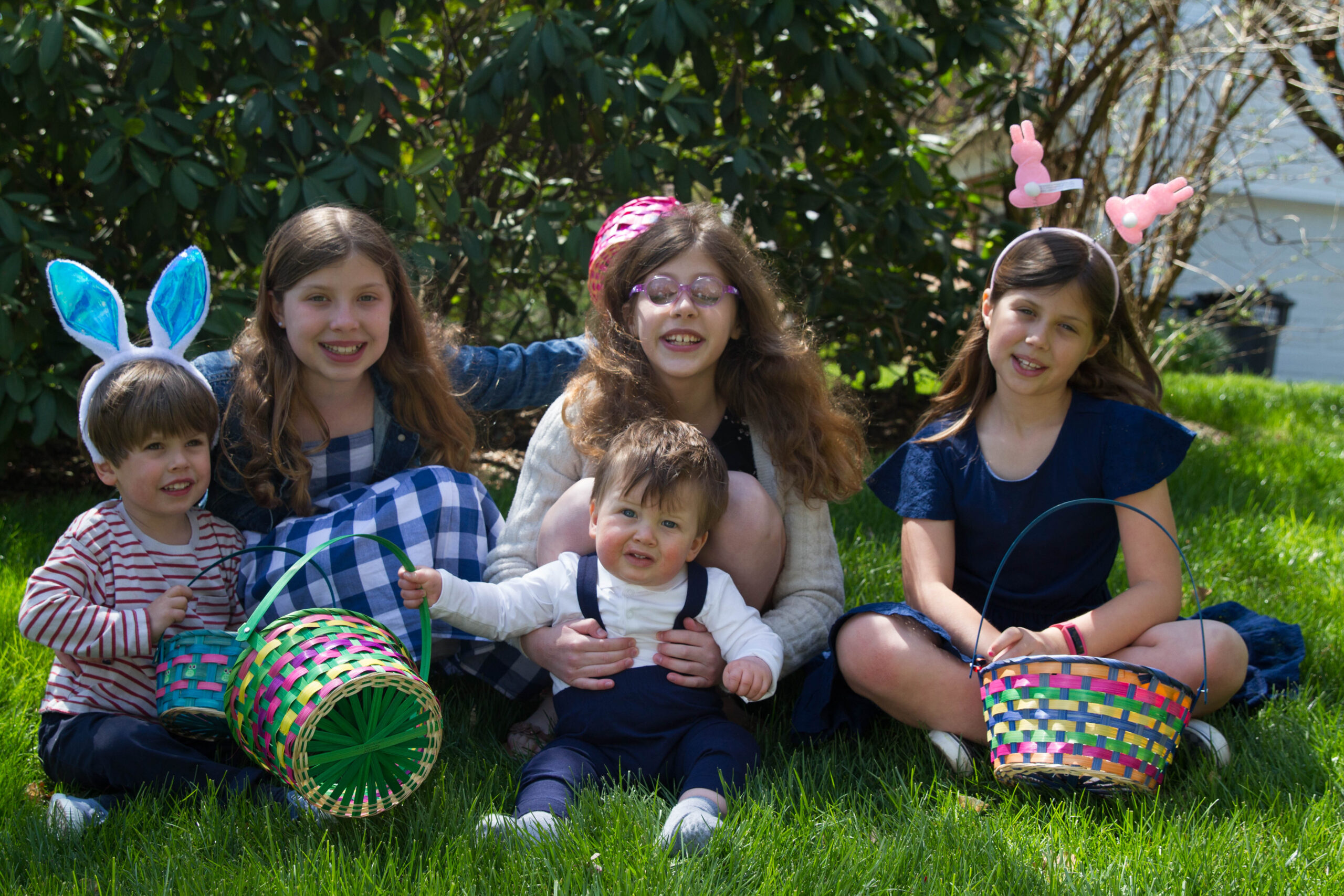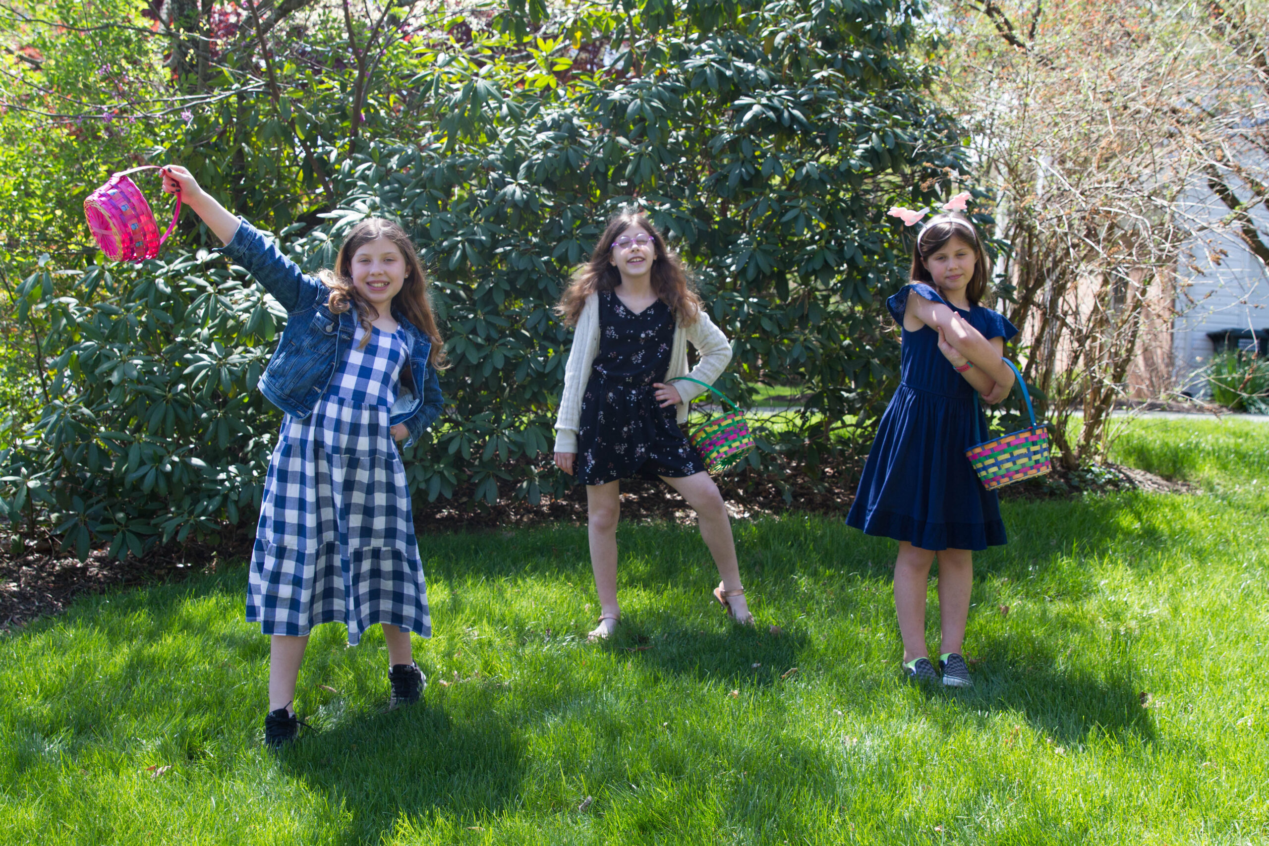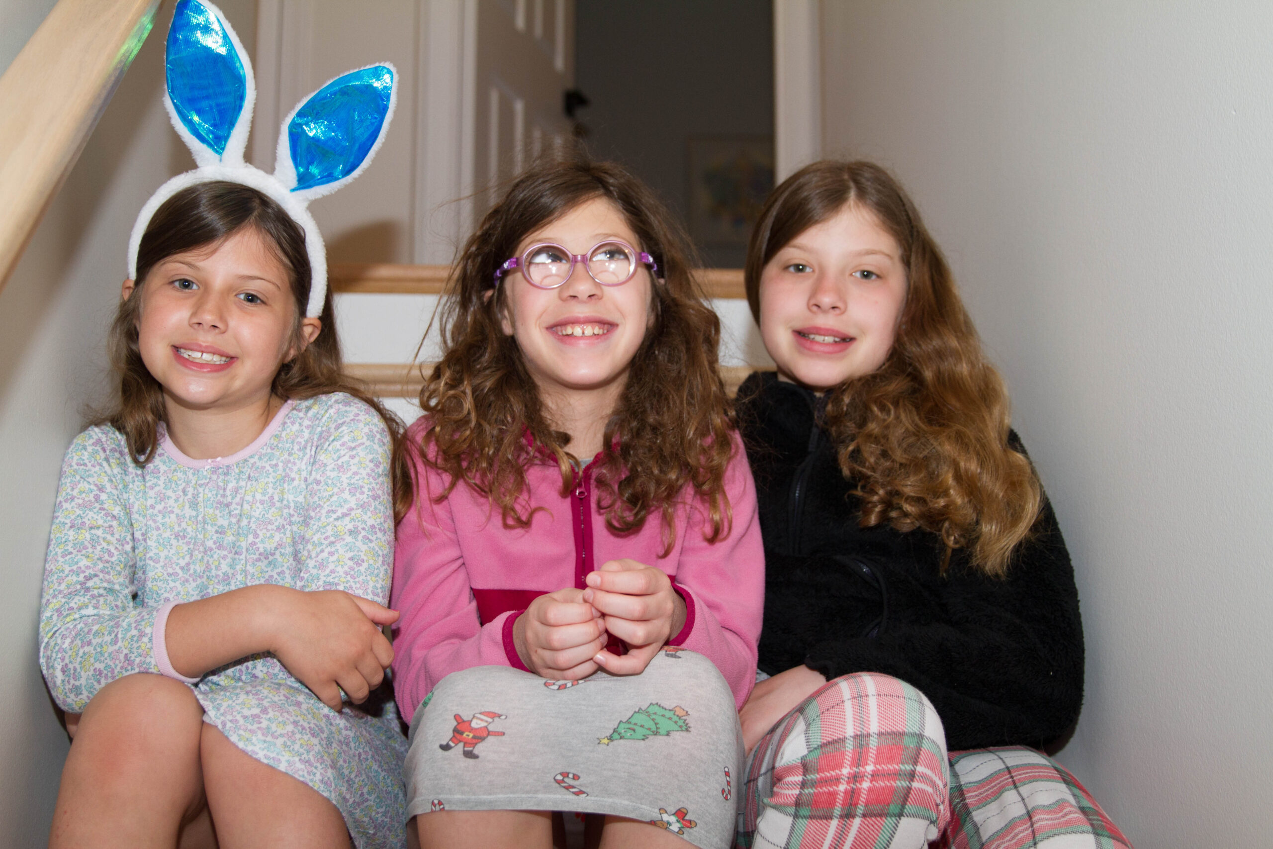 Despite a chill in the air, it was a sunny beautiful day. The Easter Bunny arrived in the morning. The girls are barely able to sit across one stair anymore!