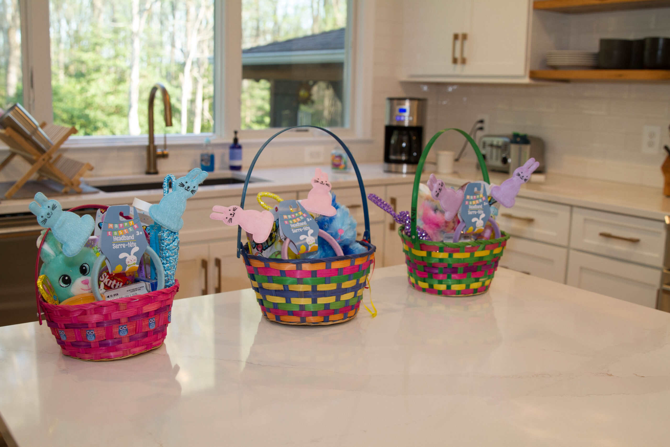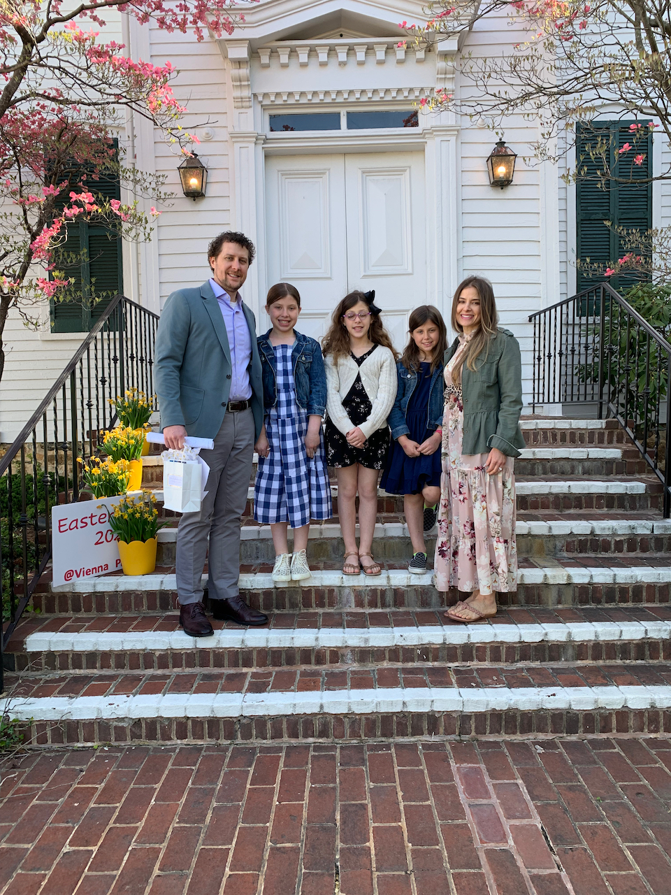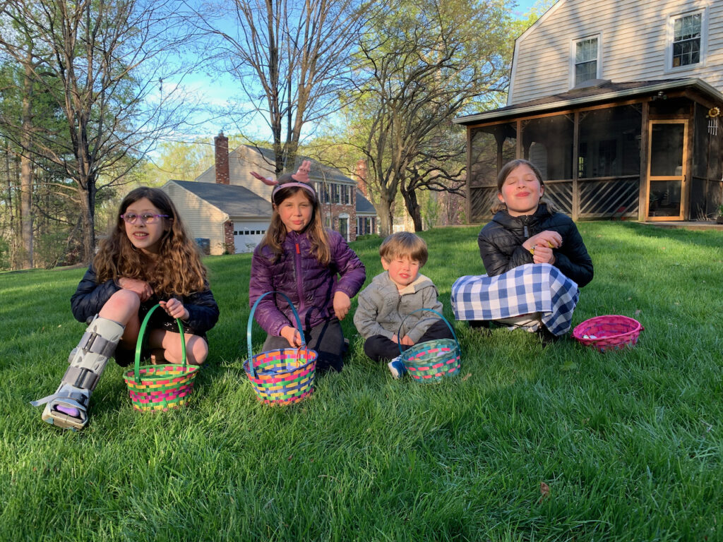 Despite a chill in the air, it was a sunny beautiful day. The Easter Bunny arrived in the morning. The girls are barely able to sit across one stair anymore!