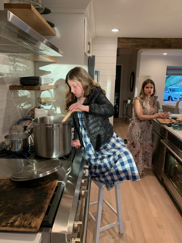 A little playtime and bike riding and a lot of afternoon cooking. Emerson wanted to make beef bourgeoise, which is no simple task. Her and I spent most the afternoon in the kitchen. The downstairs was bright and airy, and we watched everyone outside while we prepped and cooked.